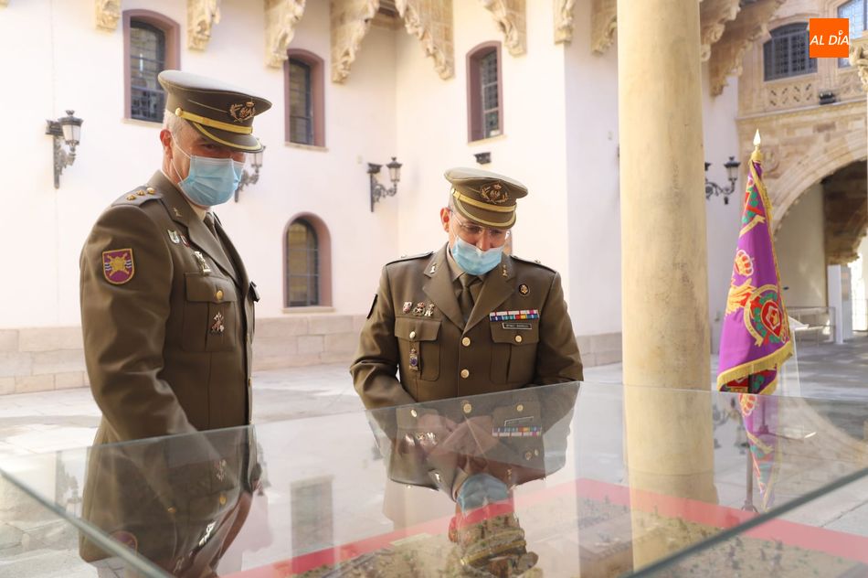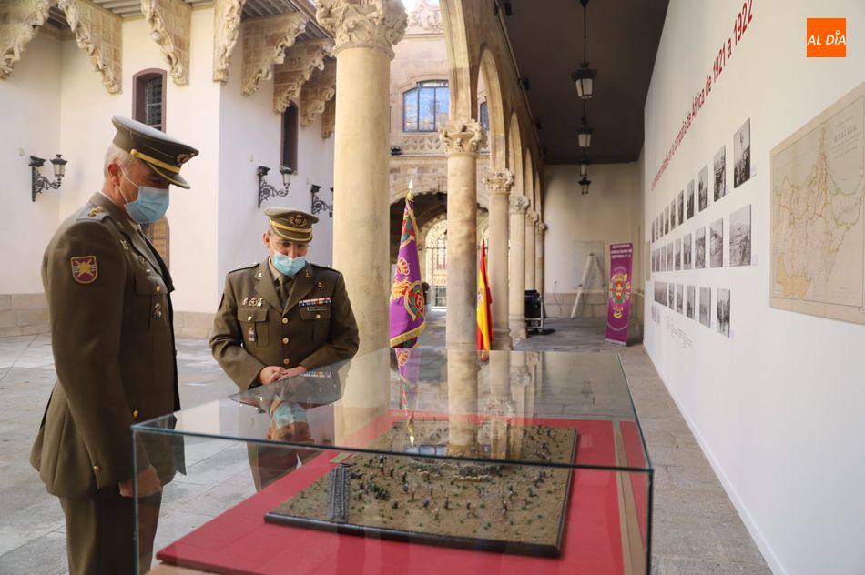 La muestra ha sido presentada este miércoles por el presidente de la Diputación de Salamanca, Javier Iglesias, y el coronel jefe del Regimiento de Ingenieros número 11, Ignacio García López, antes de visitar la zona expositiva.
