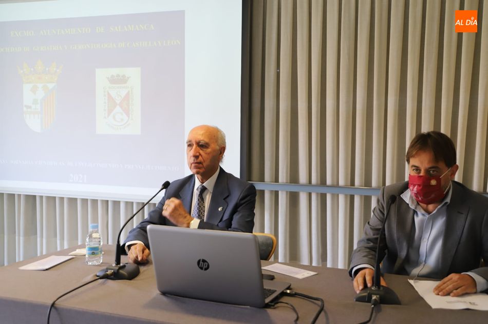 El concejal de Turismo, Fernando Castaño, y el doctor Juan Antonio González, presidente de honor de la Sociedad de Geriatría y Gerentología de Castilla y León, han presentado en el Palacio de Congresos las XXV Jornadas Científicas sobre el Envejecimiento y Pre-envejecimiento, que se celebran en ese mismo lugar, del 4 al 7 de octubre.