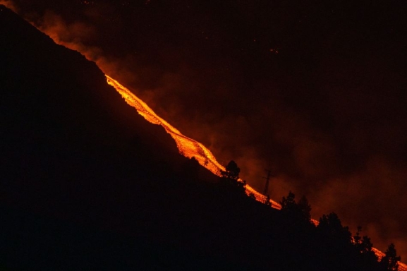 La noche transcurre sin incidentes en la zona del volcán de La Palma y la lava sigue avanzando con lentitud