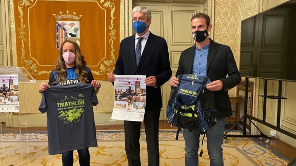 El concejal de Deportes en el Ayuntamiento, Javier García Rubio, el presidente de la Federación de Triatlón de Castilla y León, Amancio del Castillo, y Blanca Francisco, organizadora de la competición, han presentado hoy en rueda de prensa los detalles de esta prueba deportiva que incluye tramos de natación, ciclismo y de carrera a pie en dos modalidades: media distancia y olímpica.