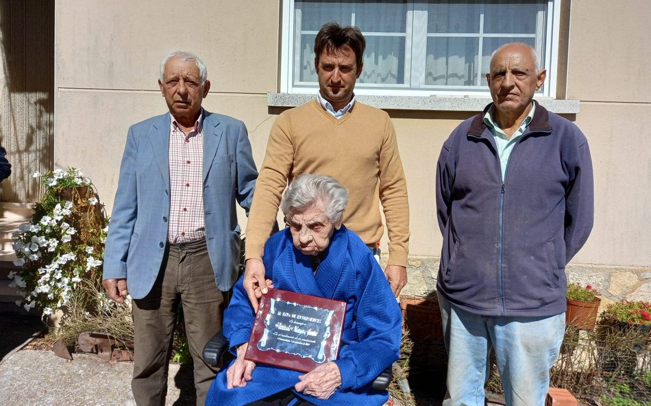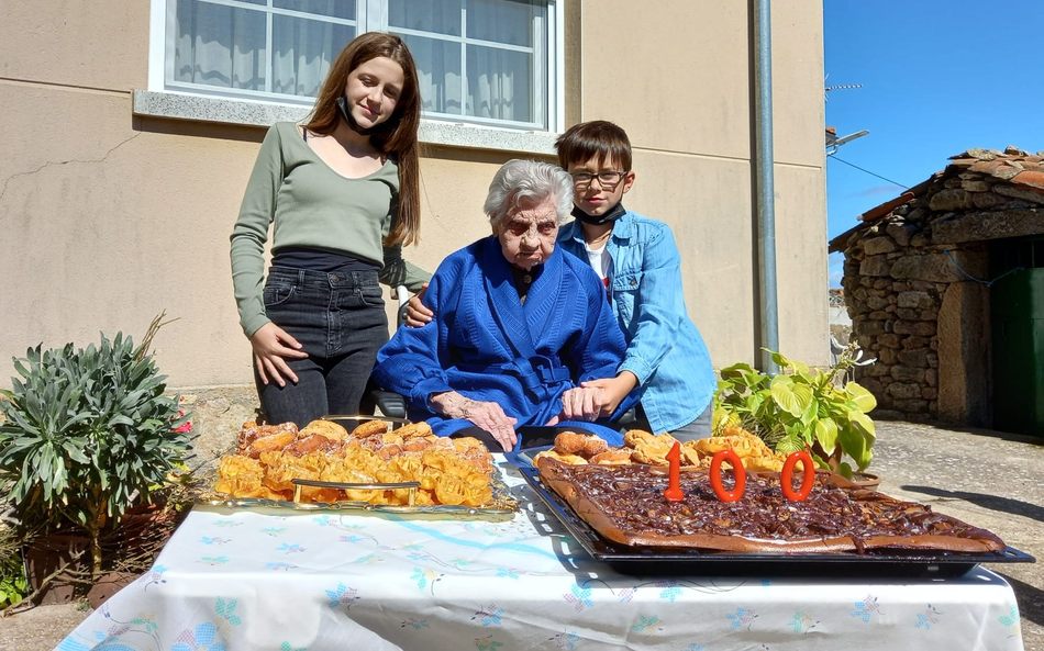 Familia y vecinos de Escuernavacas se sumaban a la celebración del centenario de Iluminada Mangas Fuentes, que recibía de manos del alcalde, Juan Jesús Mangas, una placa en recuerdo del cumpleaños de sus 100 años. Acompañada también de su familia, Iluminada y resto de asistentes dieron cuenta del convite de dulces, floretas, rosquillas y tarta para conmemorar este día.