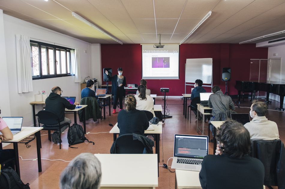 El taller desarrollado hoy por Hara Alonso ha estado dirigido a todo tipo de personas interesadas en el mundo de la creación musicial. Para ello, Tidal es un programa sencillo y accesible para personas que no hayan trabajado con música electrónica con anterioridad. Los asistentes al taller han tratado diferentes aspectos como la Introducción a la codificación en vivo, la Sintaxis de Haskell, el Tempo y secuencialidad, los Patrones simples y tipos de patrones, los Ritmos euclidianos. Secuencias de muestra simples. Así como la posibilidad de personaliza tu sonido en Tidal Cycles, modificar secuencias con funciones y estudiar las estrategias de improvisación en vivo.