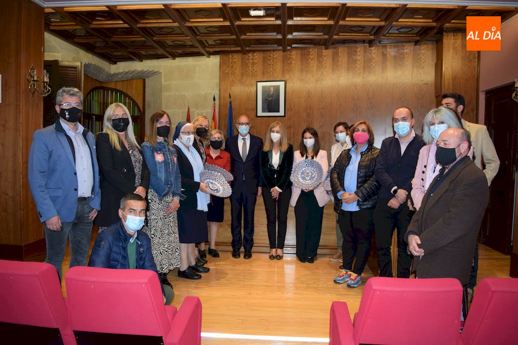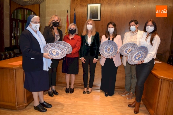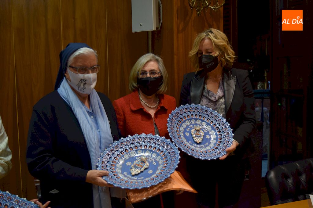 Una vez concluido el pregón, y no sin antes desear unas felices fiestas a todos los albenses, las pregoneras recibieron un obsequio en forma de plato de filigrana por parte del Ayuntamiento de Alba de Tormes.