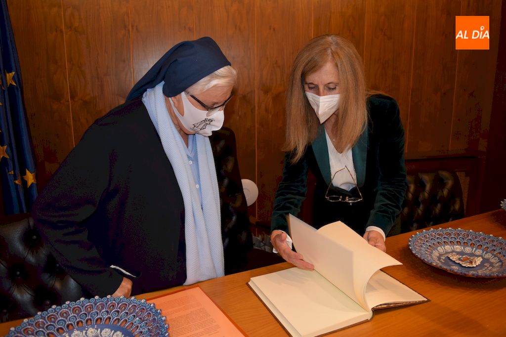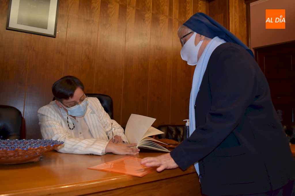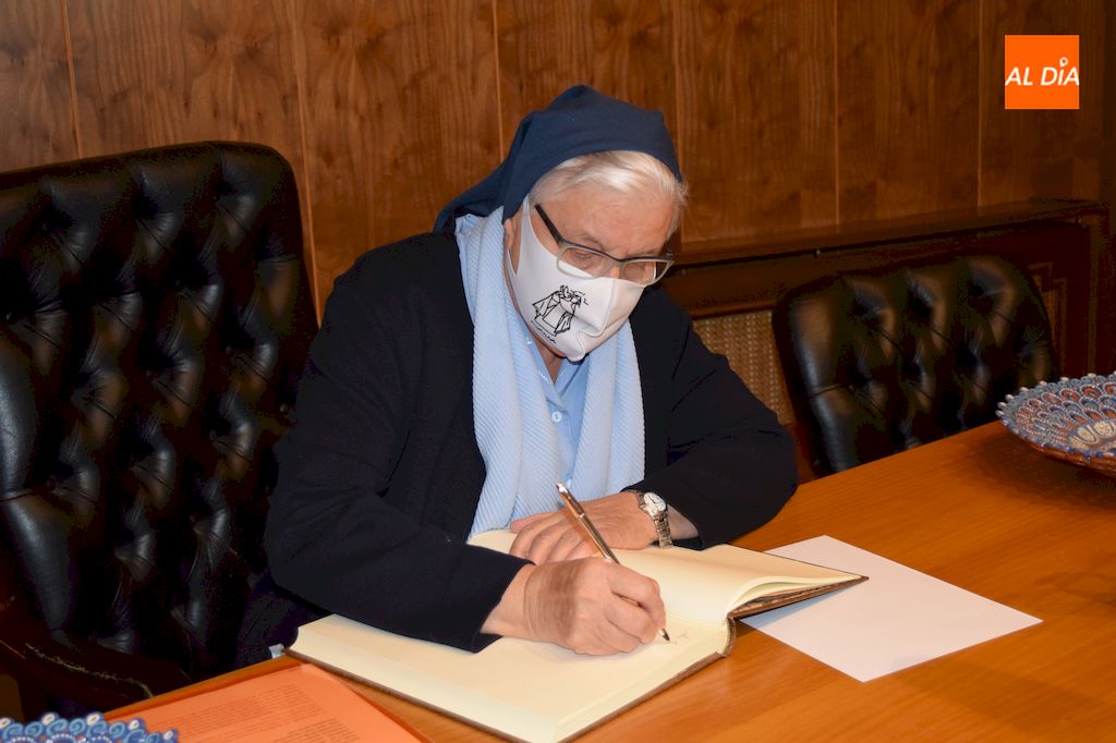 "El personal sociosanitario, como nuestra Santa, ha sabido estar en tiempos recios, y como ella decía "en tiempos recios son menester amigos fuertes de Dios para sustentar a los flacos". Estamos contentos y satisfechos de vuestra tarea, y de la profesionalidad y entrega con la que la habéis dispensado. Estamos orgullosos, especialmente aquí en Alba de Tormes y Salamanca, donde había tantos frentes a los que acudir. Sin vosotros no hubiésemos podido llegar al momento actual. Vosotros estabais en la llamada de teléfono a primera hora de la mañana para ver la evolución del enfermo y cambiar el tratamiento, os preocupasteis de dar indicaciones para evitar contagios, os aislasteis en vuestra residencia o domicilios para evitar el contagio vuestras familias y albenses. Vosotros fuisteis nuestros héroes y heroínas", comentaba la alcaldesa en su introducción.