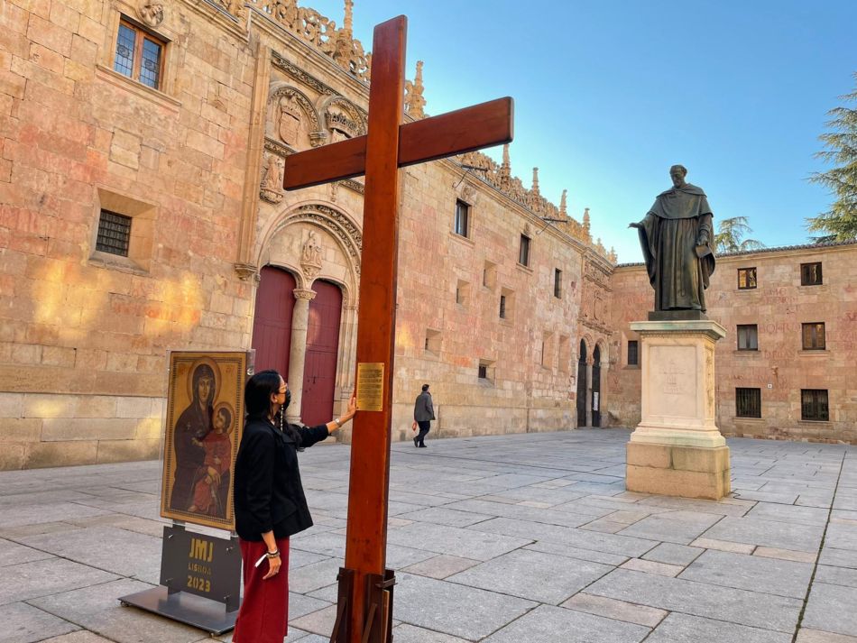 Los símbolos de la JMJ de Lisboa 2023 llegaron a Salamanca desde Plasencia, donde fueron a recogerlos los responsables de la Pastoral Universitaria y Juvenil, junto a dos jóvenes de la diócesis. La furgoneta donde viaja la Cruz de los jóvenes y el icono de Madrid recorre España desde hace unas semanas, y donde se puede leer en uno de sus laterales su lema: "Donde quiera que estés, todos estamos en camino".
