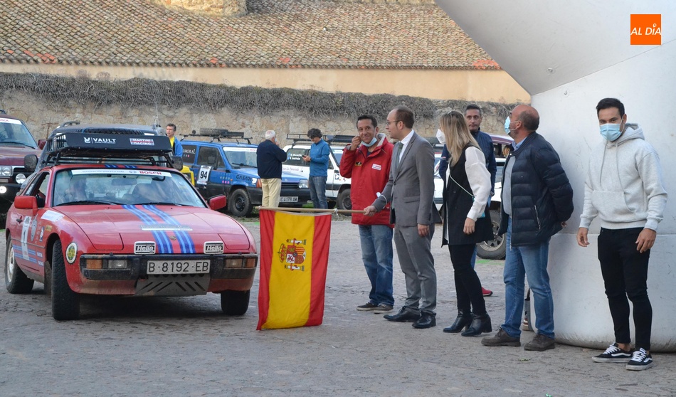 Los vehículos se marcharon de la Plazuela de uno en uno de minuto en minuto, según les iban dando la salida bajo el arco de la organización (que no se había podido montar en la tarde del miércoles para la llegada por culpa del viento). A los primeros vehículos en salir (a las 9.30 horas) les dieron literalmente el banderazo de salida el alcalde Marcos Iglesias junto a los concejales Víctor Gómez, Beatriz Jorge Carpio y Ramón Sastre.