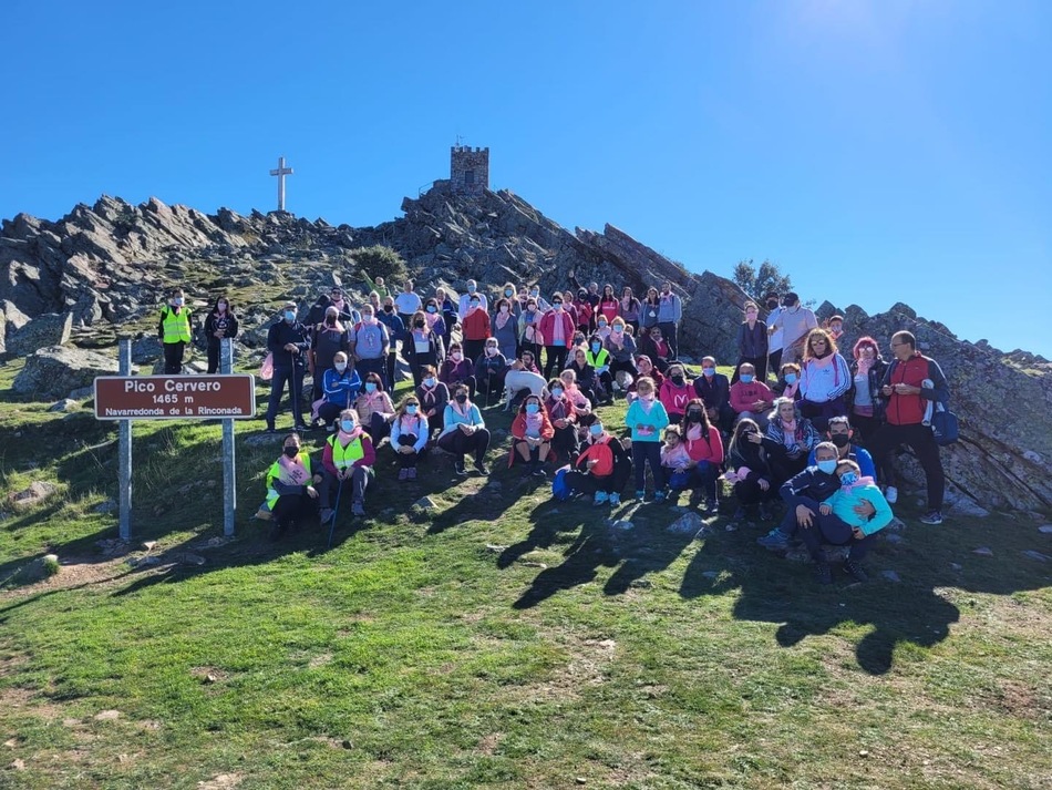Los participantes recorrieron un total de 15 kilómetros en una jornada soleada que les permitió 'poner' el pañuelo rosa en el Pico Cervero. Esta propuesta ha servido para recaudar fondos a favor de la investigación del cáncer, que se entregarán a la AECC.