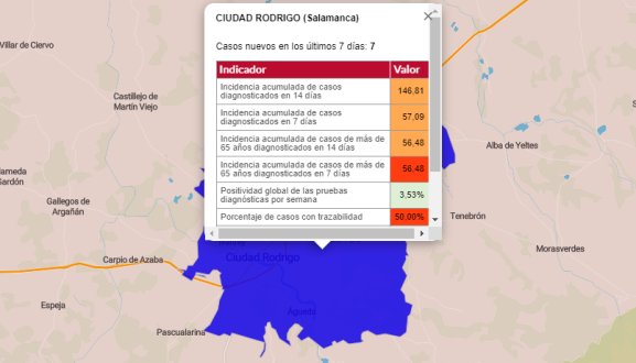 Después de haber ido progresivamente descendiendo desde el jueves de la semana pasada, la incidencia semanal acumulada de Ciudad Rodrigo sufre este nuevo jueves un aumento, de 40 a 57 casos por cada 100.000 habitantes, producto de la aparición de dos nuevos positivos en las últimas horas, lo que hace que la cifra de casos de la última semana suba de 5 a 7 respecto a la jornada del miércoles.