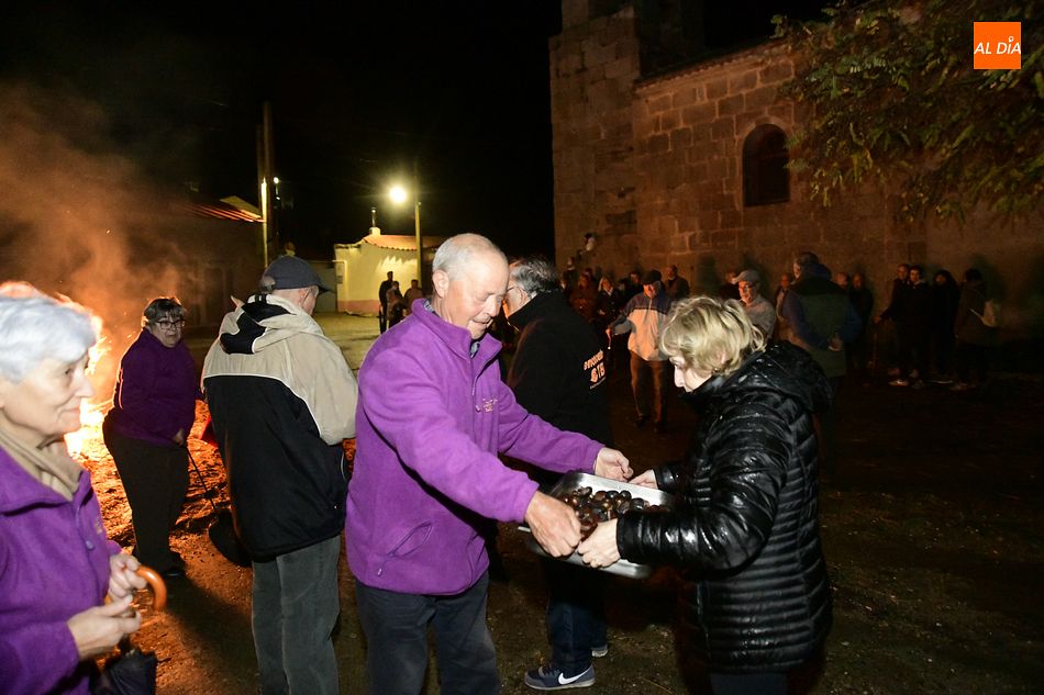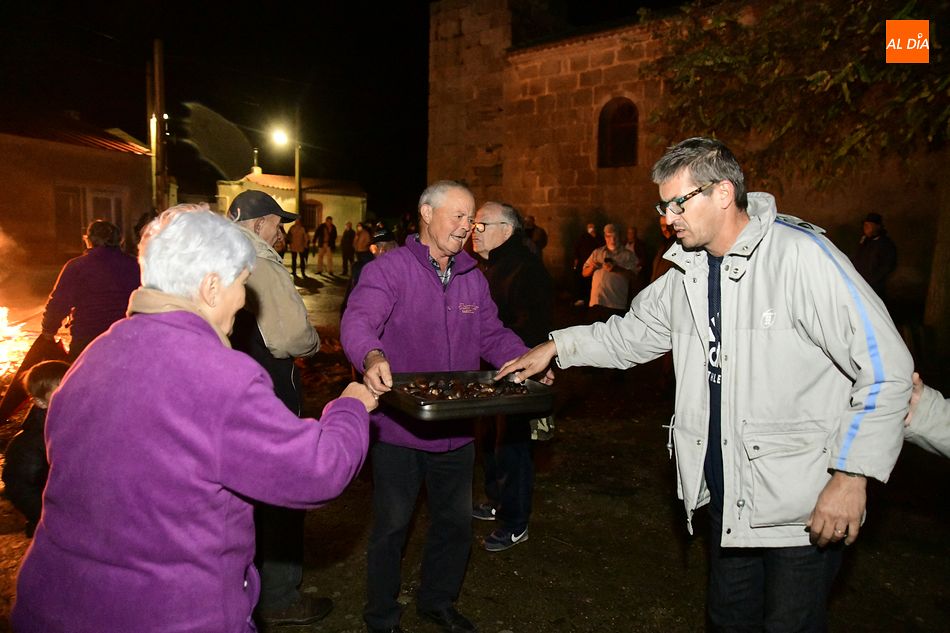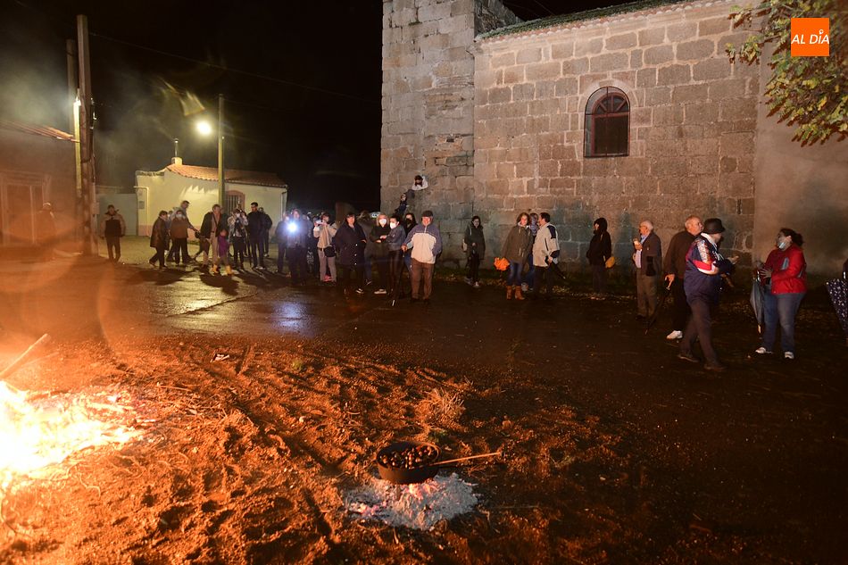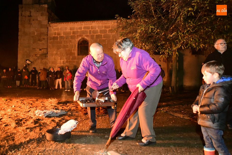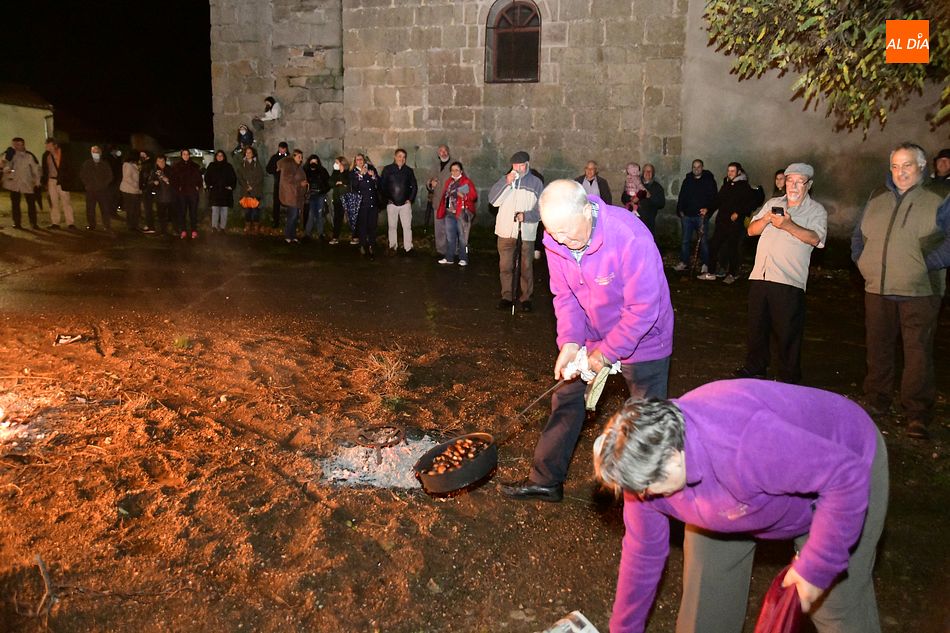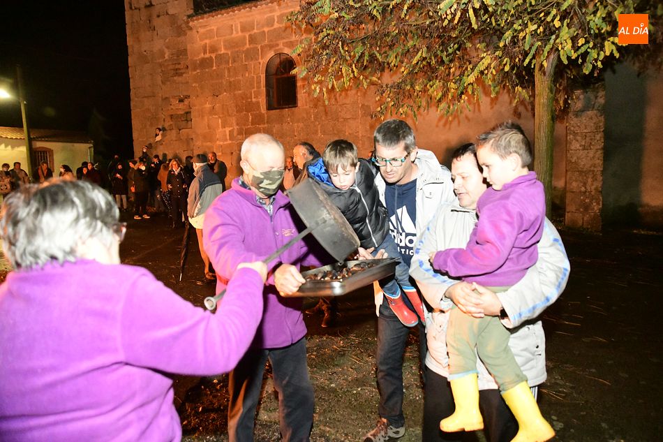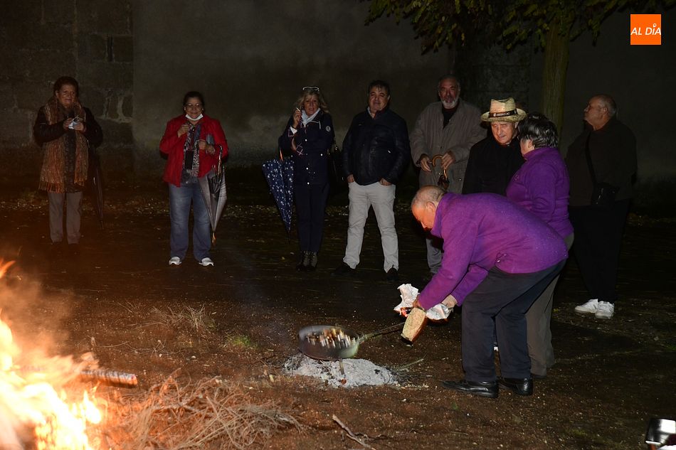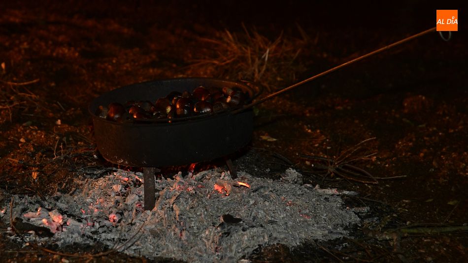 Previamente, una carbochada o carbotada (depende de la zona tiene un nombre) de castañas asadas había estado al fuego para estar listas a la llegada de los ramos. Frutos secos que degustaron todos los asistentes.