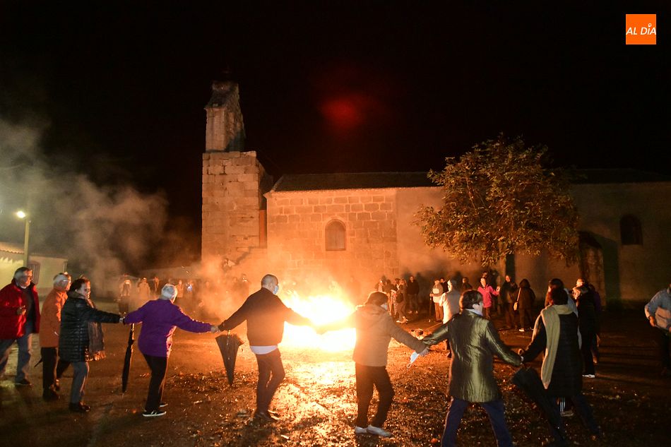 Una vez depositados los tres ramos en la hoguera, los asistentes hicieron un corro alrededor de la misma dando varias vueltas cogidos de la mano.