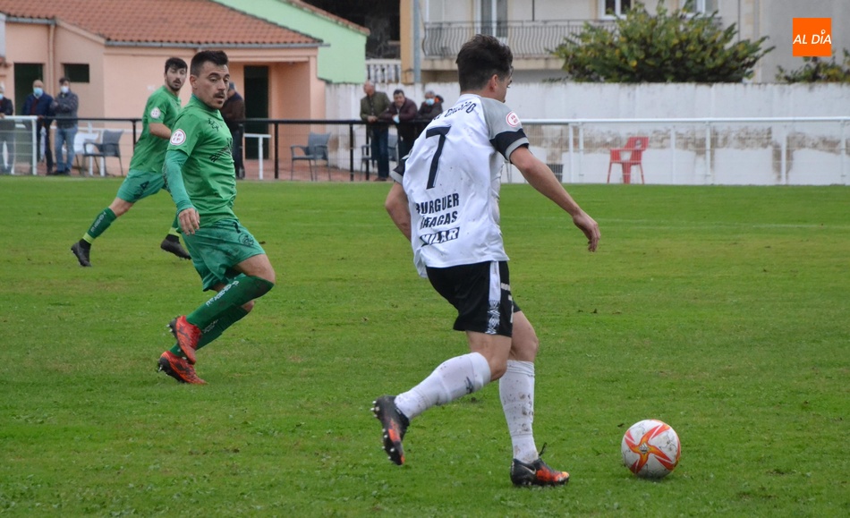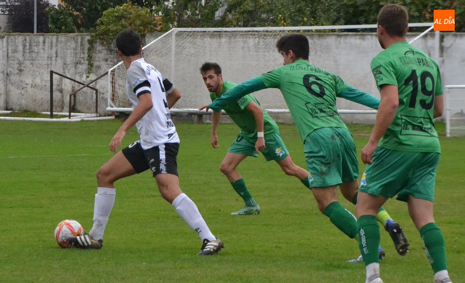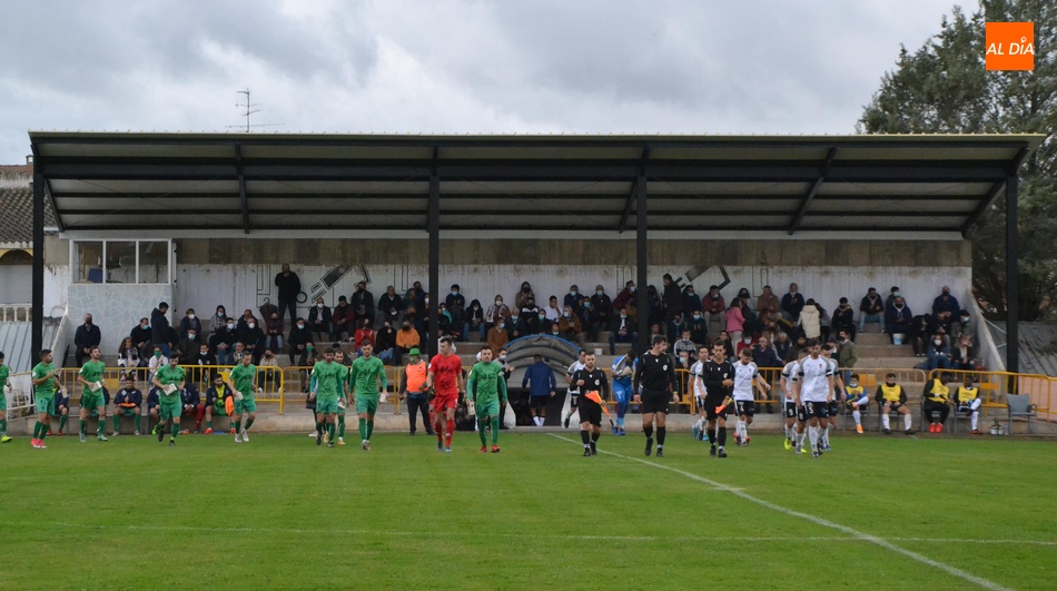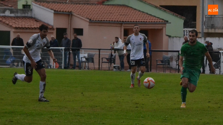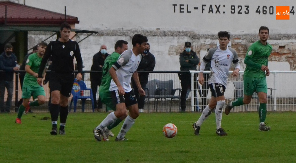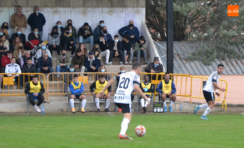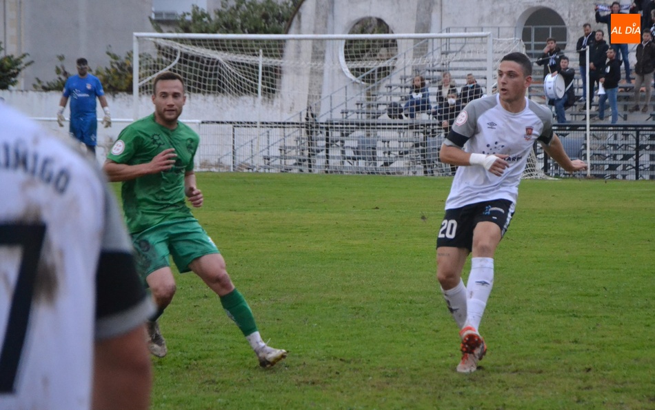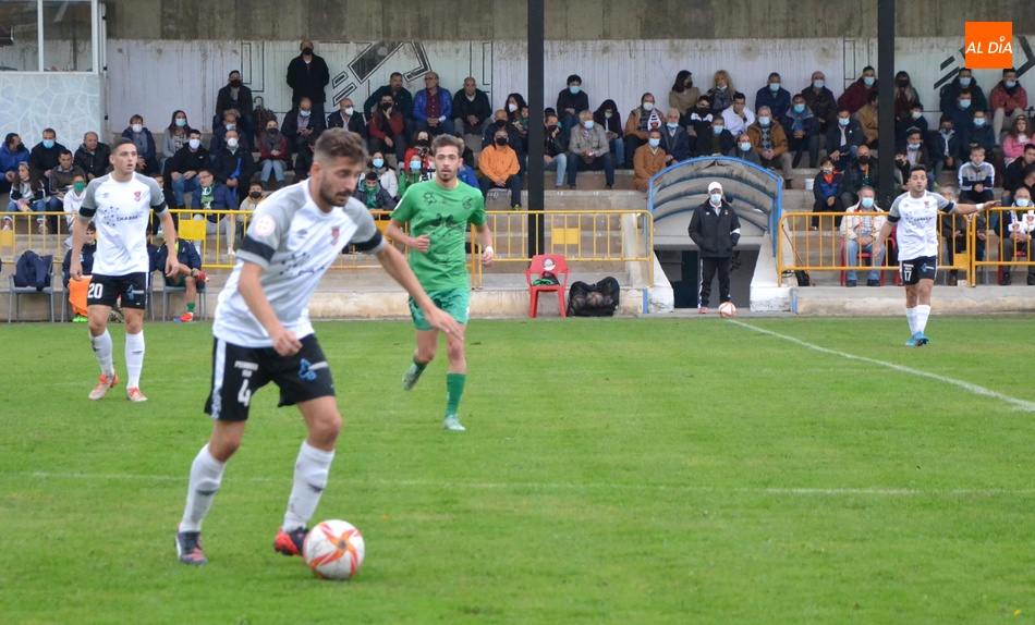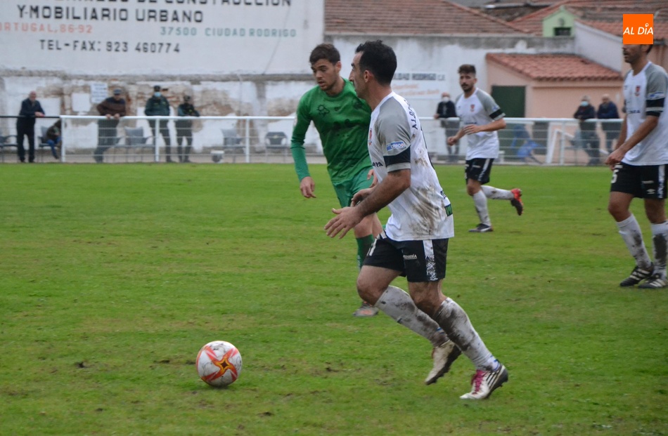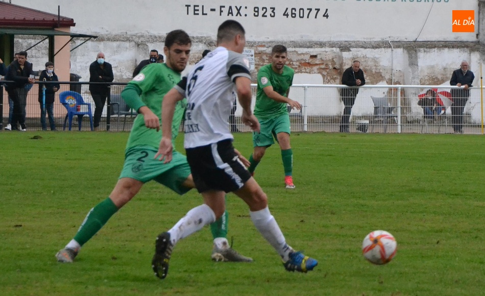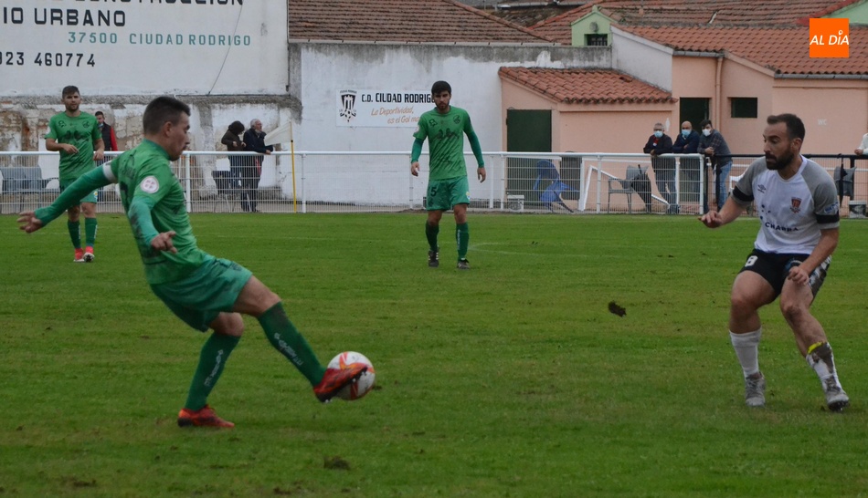 Cuando el partido estaba cerca de alcanzar la media hora de juego, el Ciudad Rodrigo logró tener más balón unos minutos, aunque no pudo sacarle partido de cara a portería (en el 30', Alberto Martín le metió un buen balón al hueco a Manu González, pero se anticipó el guardameta, algo que también ocurriría minutos después con un pase de Sergi de nuevo a Manu González). El tramo final de la primera parte fue dominado por los visitantes, que pusieron en apuros al Ciudad Rodrigo, que fue despejando balones (tenían una gran habilidad para colgar al área balones en saques de banda), aunque menos cómodo que otros días.
