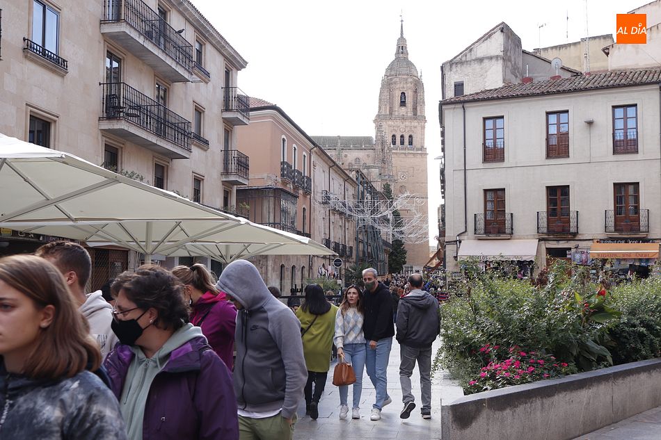 Nuevo puente festivo en Salamanca y de nuevo buena sensación de afluencia turística en las calles. Durante los últimos tres días la ciudad ha recibido a gran cantidad de visitantes por el puente de Todos los Santos. Los días libres han llegado acompañados de mal tiempo, debido al temporal de lluvias que sufre toda la península Ibérica, pero la peor parte quedó el fin de semana y hoy se ha podido disfrutar de cielos más despejados. La ausencia de precipitaciones ha facilitado el acceso a los cementerios y también el tránsito de turistas, especialmente en las zonas turísticas salmantinas. Se espera que mañana regresen las lluvias, especialmente a partir de mediodía.