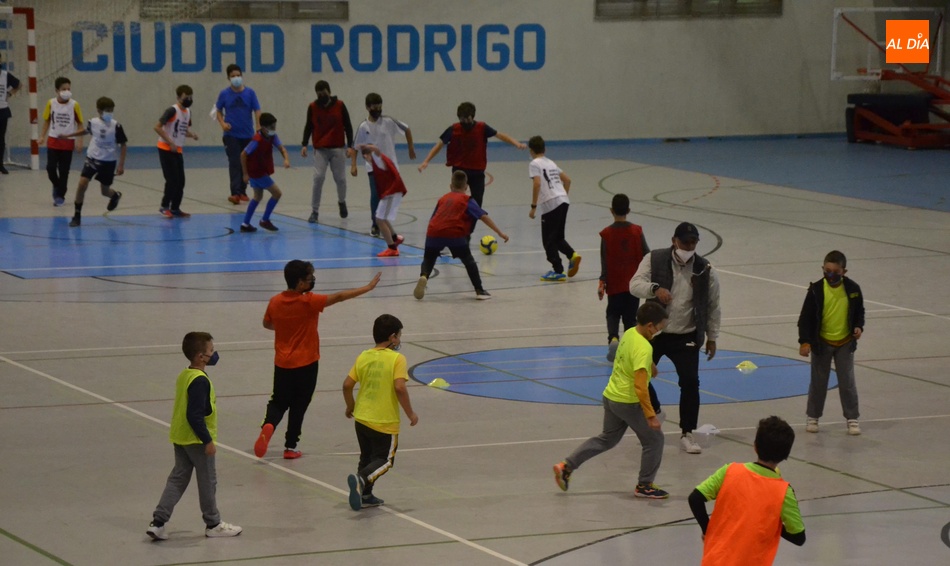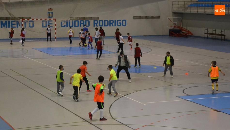 La pista principal del Pabellón Eladio Jiménez de Ciudad Rodrigo tuvo en la jornada del martes, como ocurrirá todas las semanas a partir de ahora, una completa tarde de la mano de las escuelas deportivas municipales, ya que fueron pasando por la misma los integrantes de las escuelas de Fútbol Sala, Atletismo y Baloncesto, suponiendo estas sesiones el regreso a la actividad de las escuelas de Fútbol Sala y Baloncesto después de 20 largos meses de parón, desde que estalló la pandemia del coronavirus en marzo de 2020.