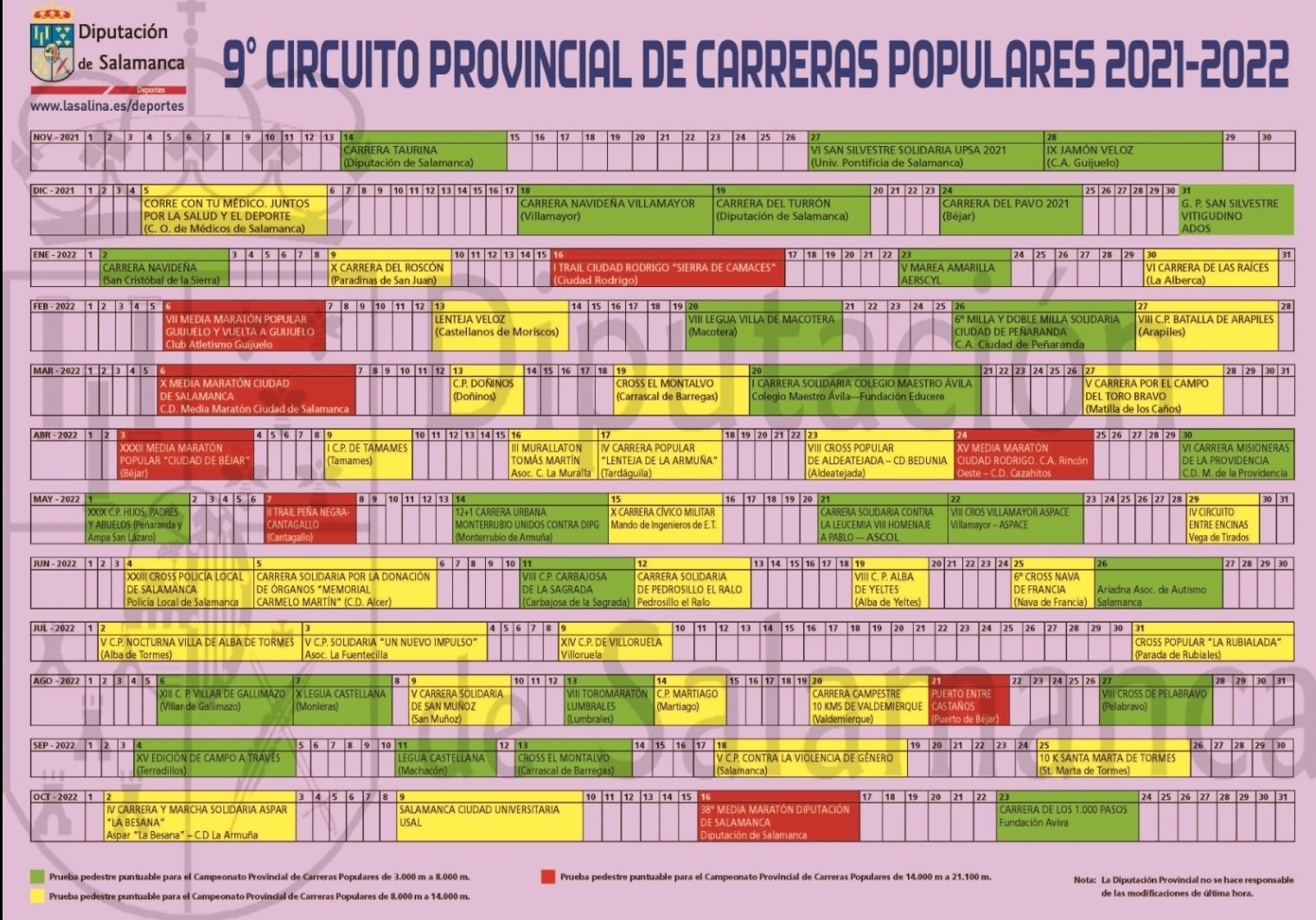 El IX Circuito Provincial de Carreras Populares 21-22 ya es una realidad. Se trata de un circuito único en el ámbito nacional y que cuenta con un total de 65 pruebas. Además, en la mañana de este viernes se ha presentado en la Diputación, donde mostraban su alegría por poder volver a "ver semana tras semana en nuestros municipios, sus calles llenas de corredores que dan vida y alegría. "Este circuito demuestra el gran momento que está viviendo el atletismo popular en nuestra provincia", dijo el diputado Jesús María Ortiz.