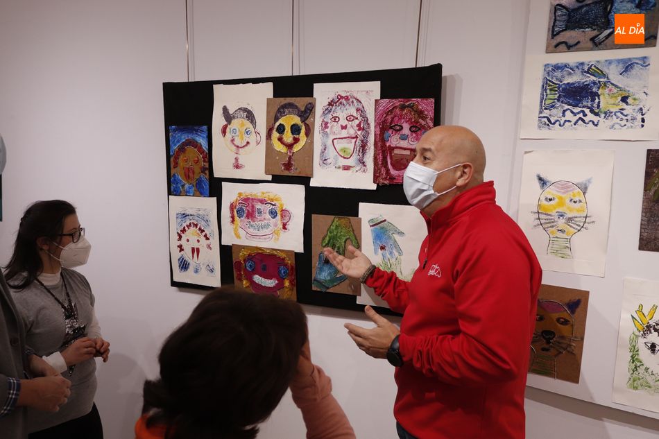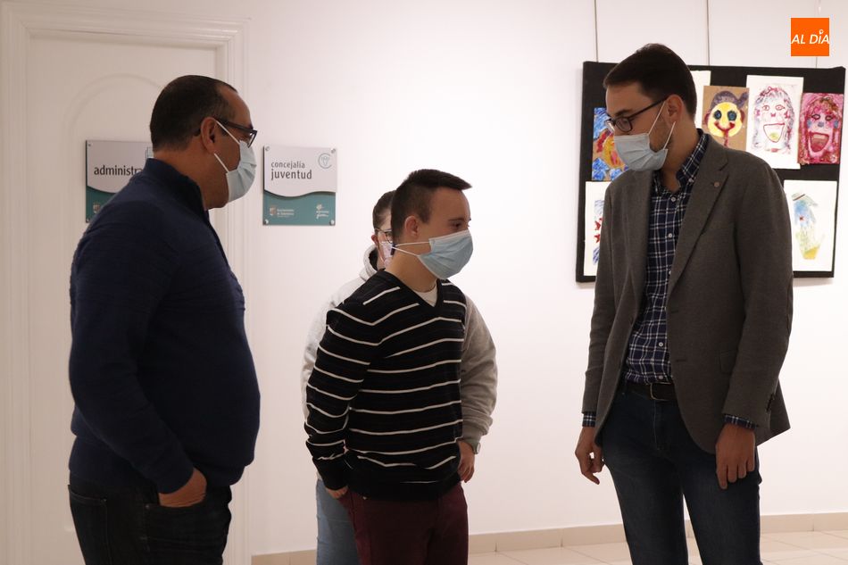 El concejal de Juventud en el Ayuntamiento de Salamanca, Ángel Fernández, y el presidente de la Fundación Aviva, Miguel Ángel Benito, han inaugurado esta muestra con piezas creadas dentro del programa de ocio inclusivo que la fundación puso en marcha hace 19 años para promover las expresiones artísticas de las personas con discapacidad.
