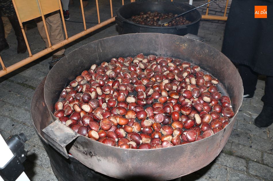 La castañada popular de Guijuelo se ha celebrado en la tarde de hoy viernes con la presencia de numerosos vecinos que se han acercado hasta la plaza Mayor del municipio para compartir una jornada de juegos y degustar uno de los frutos de la temporada. Desde las cinco y media de la tarde, los pequeños y las familias de Guijuelo participaron en los juegos tradicionales organizados por Asadina y desde las seis y media, pudieron comer las castañas asadas. En la celebración tomaron parte miembros del Ayuntamiento de Guijuelo, como el alcalde, Roberto Martín y la concejala de Cultura, María Jesús Moro. La empresa Asadina fue la responsable del reparto de alrededor unos 300 kilos.