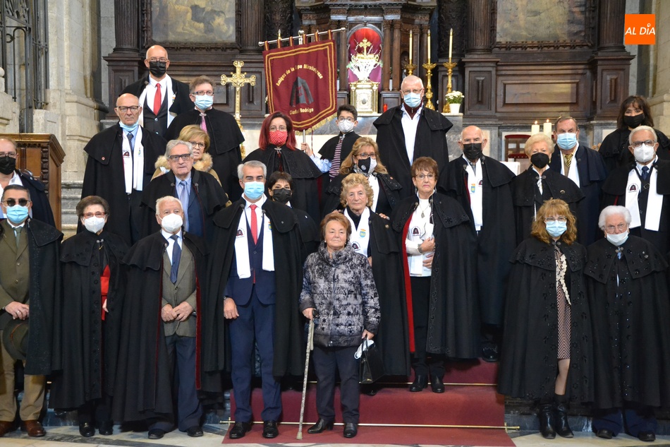 Los Amigos de la Capa de Ciudad Rodrigo están celebrando durante este domingo su tradicional reunión para festejar a su patrón, San Martín de Tours, que apareció en el calendario litúrgico el pasado jueves. La celebración de este año tiene un cariz especial, ya que supone volver a reunirse tras no poderlo hacer el año pasado por culpa de la pandemia del coronavirus. Como es tradición, esta celebración de los Amigos de la Capa arrancó en la Iglesia de Cerralbo, donde asistieron a una eucaristía presidida por el párroco de El Sagrario, Ángel Martín Carballo, quién también se puso una capa para la tradicional foto de familia en las escaleras del altar. Tras ello, los Amigos de la Capa se acercaron al vecino Hogar de Caja Duero para tomar un caldo caliente antes de bajar a El Paraje, donde a la hora de publicarse esta información están disfrutando de una comida conjunta.