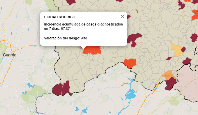 Por otro lado, este martes vuelve a marcar casos la localidad de Navasfrías, cuyo último positivo hasta la fecha databa de principios de mes, del 3 de noviembre. Como ocurre siempre en las localidades de menos de 1.000 habitantes, no se puede determinar el número exacto de positivos registrados en este municipio, pero todo apunta a que sólo es 1, ya que el nivel de riesgo de la incidencia quincenal sólo es Alto por el momento.
