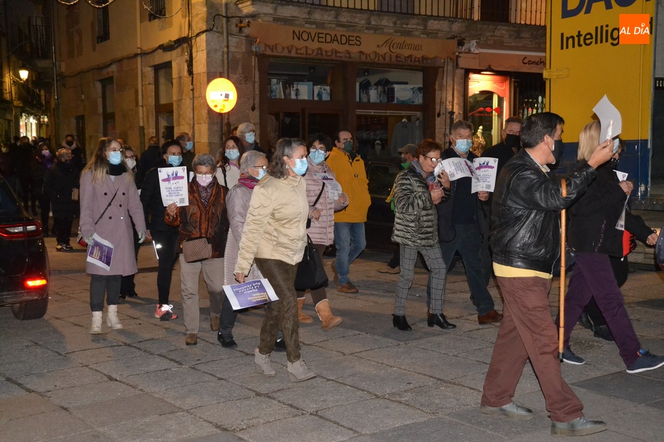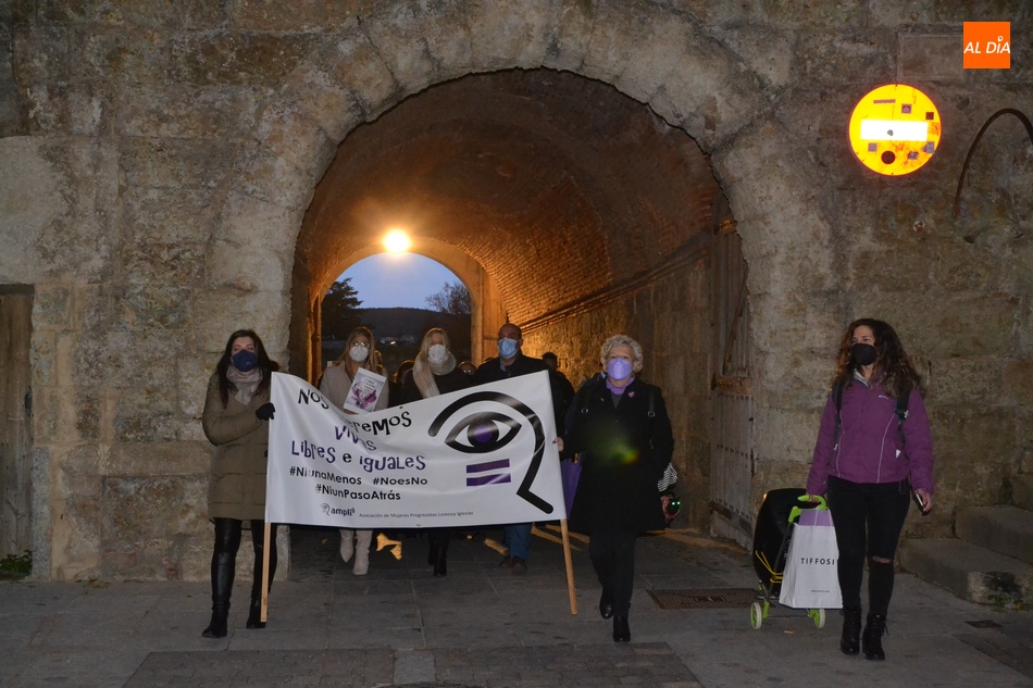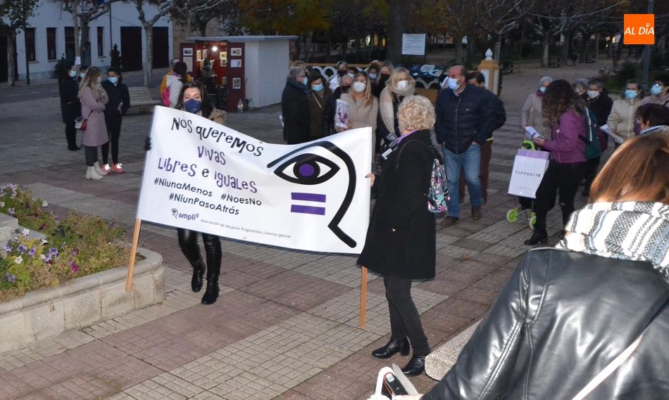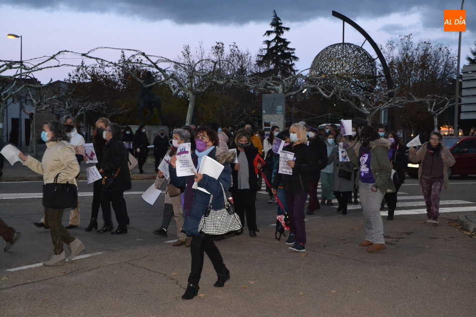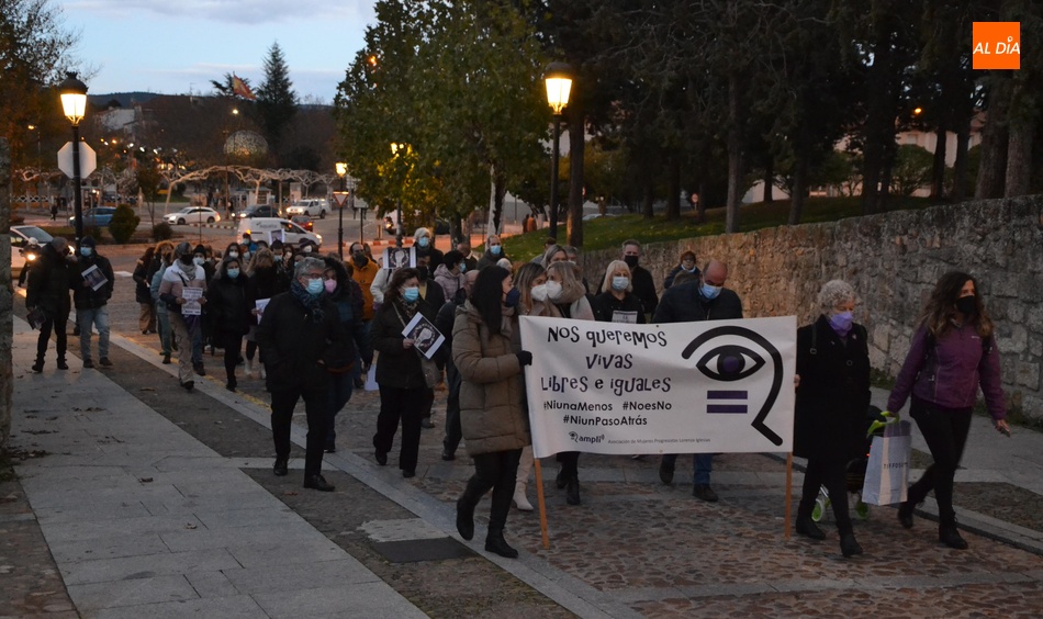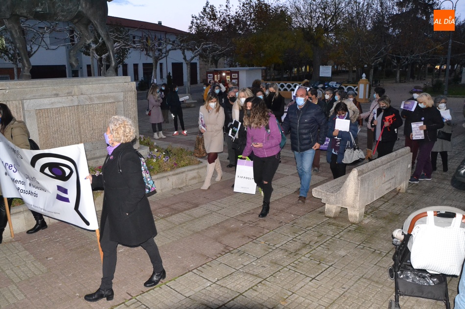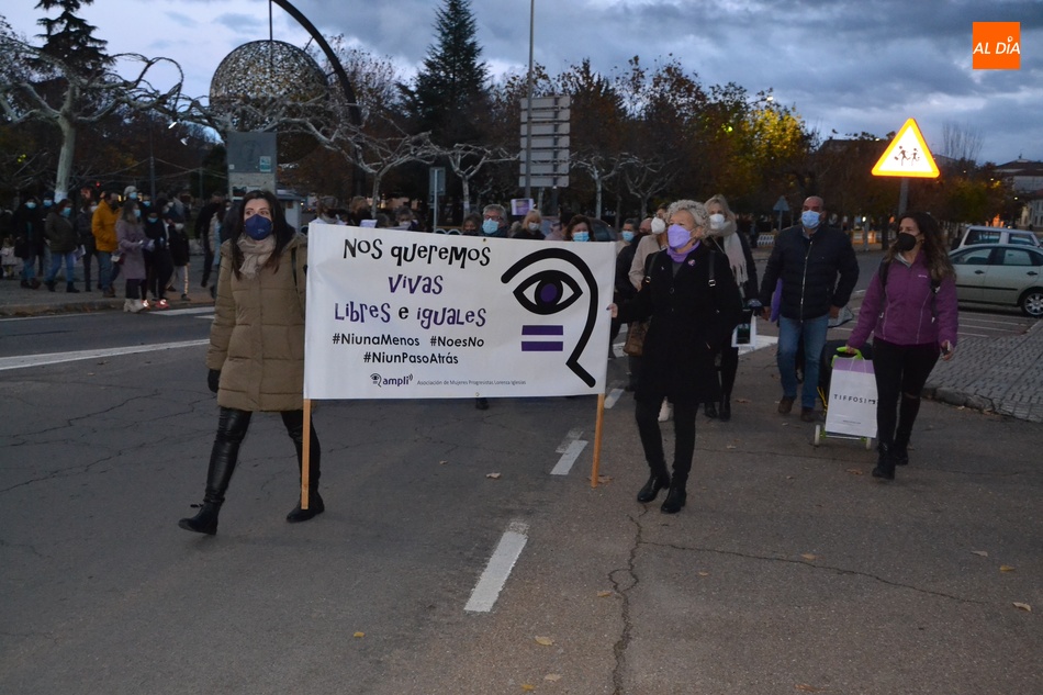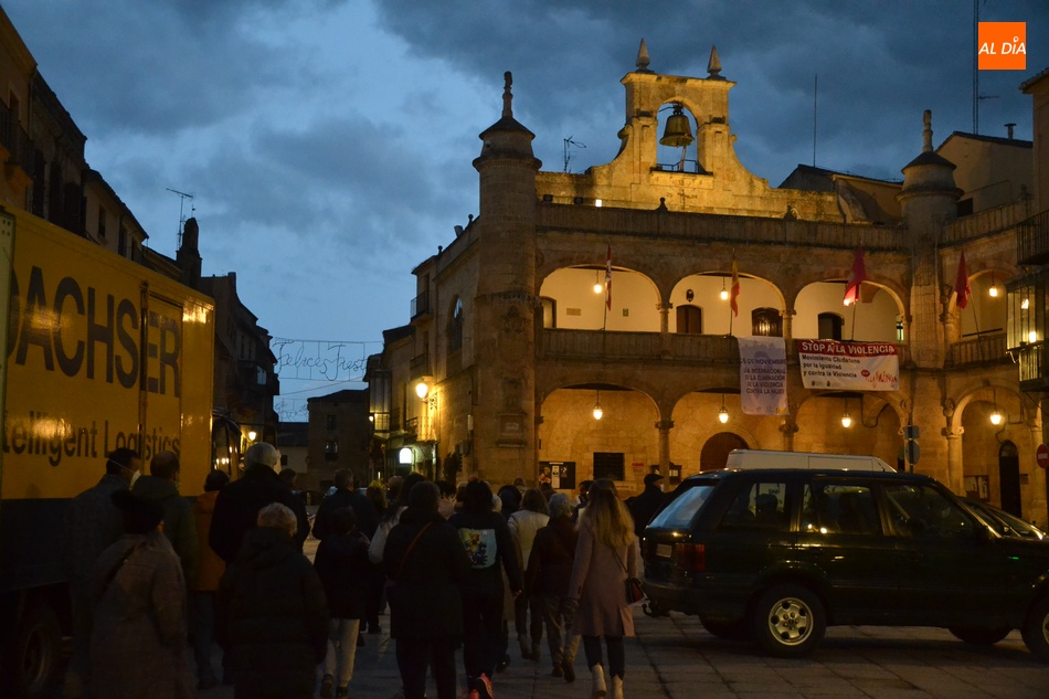 Algo más de medio centenar de personas tomaron parte en la tarde del jueves en la manifestación por las calles de Ciudad Rodrigo convocada por la Asociación de Mujeres Progresistas Lorenza Iglesias (Ampli) con motivo del Día Internacional para la Eliminación de la Violencia hacia las Mujeres, que arrancó junto al Monumento al Garrochista y concluyó en la Plaza Mayor, transcurriendo por el Registro y la calle Madrid, supervisada por agentes de la Policía Local.