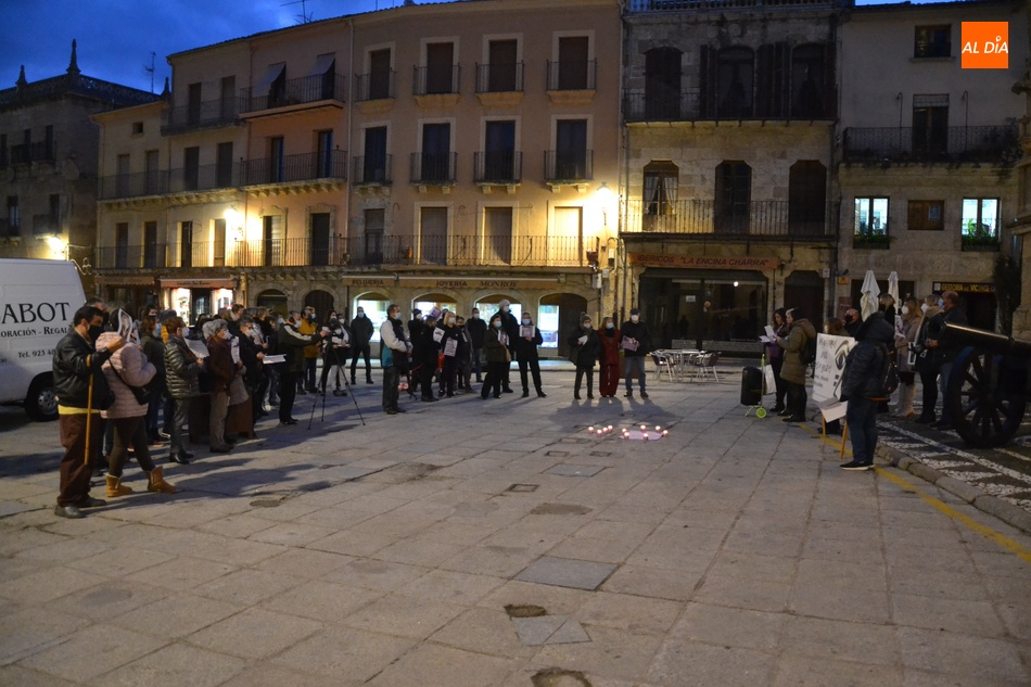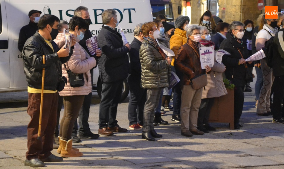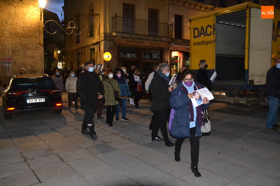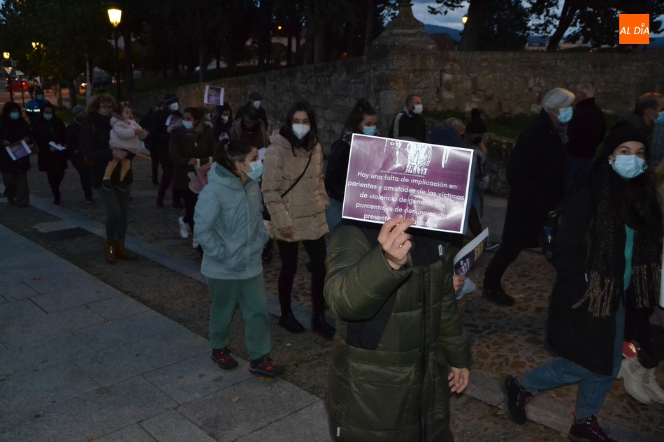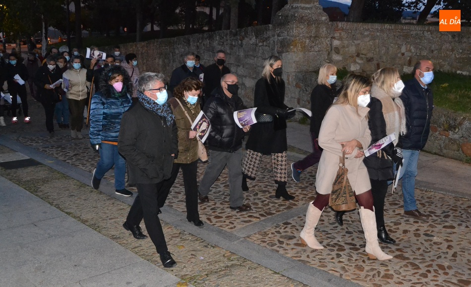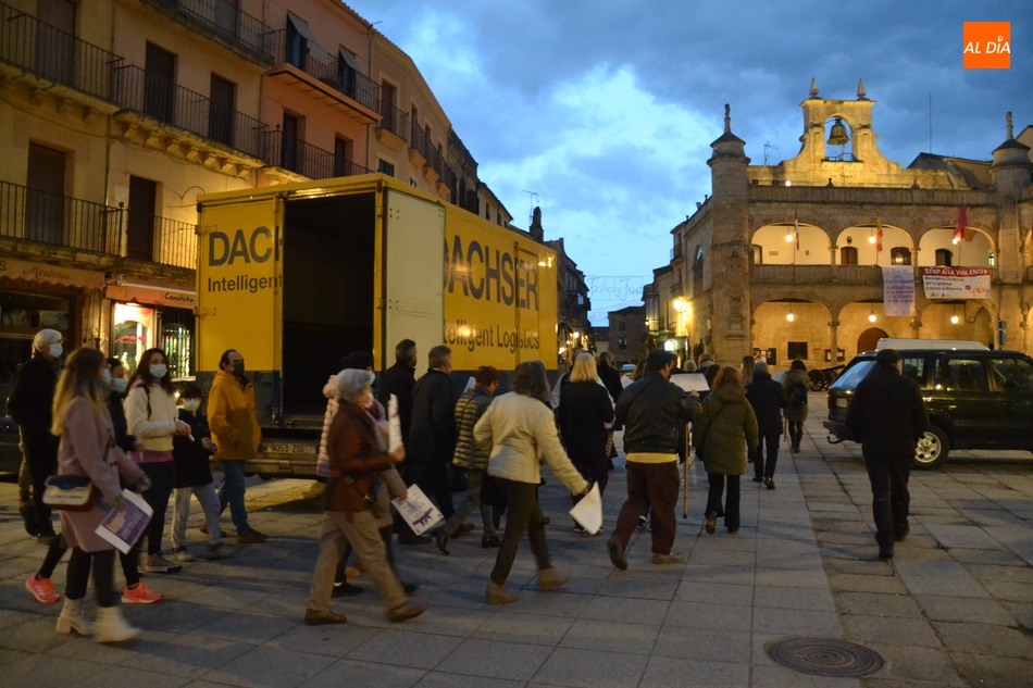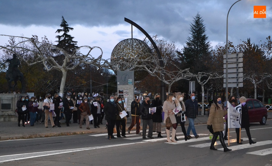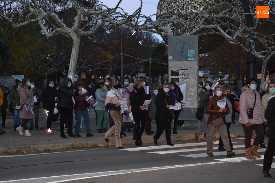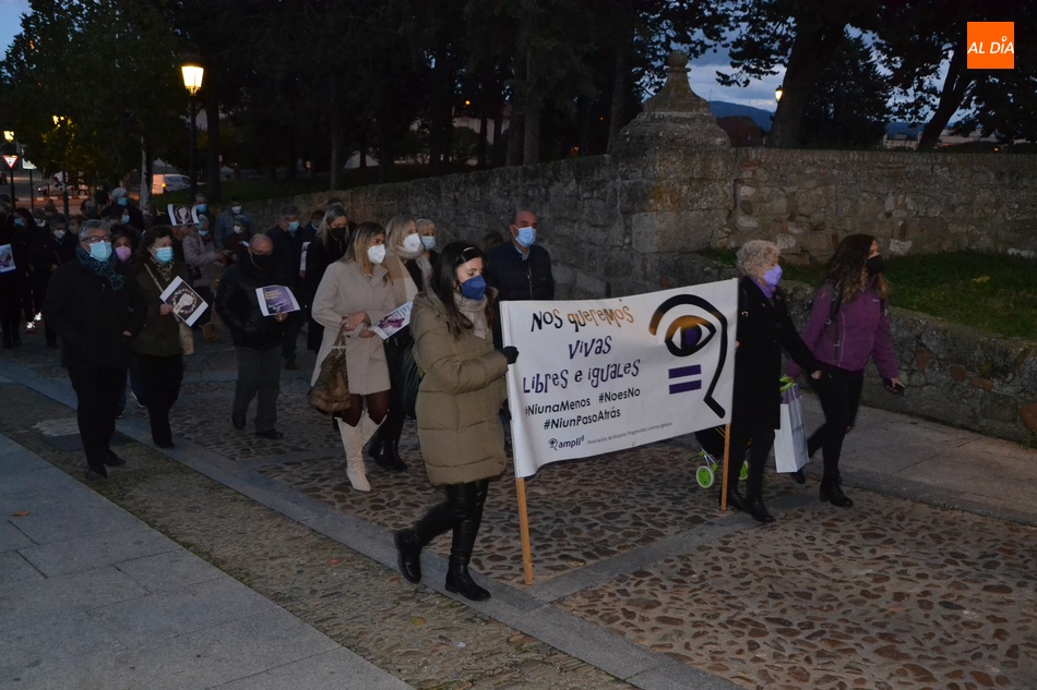 Algo más de medio centenar de personas tomaron parte en la tarde del jueves en la manifestación por las calles de Ciudad Rodrigo convocada por la Asociación de Mujeres Progresistas Lorenza Iglesias (Ampli) con motivo del Día Internacional para la Eliminación de la Violencia hacia las Mujeres, que arrancó junto al Monumento al Garrochista y concluyó en la Plaza Mayor, transcurriendo por el Registro y la calle Madrid, supervisada por agentes de la Policía Local.