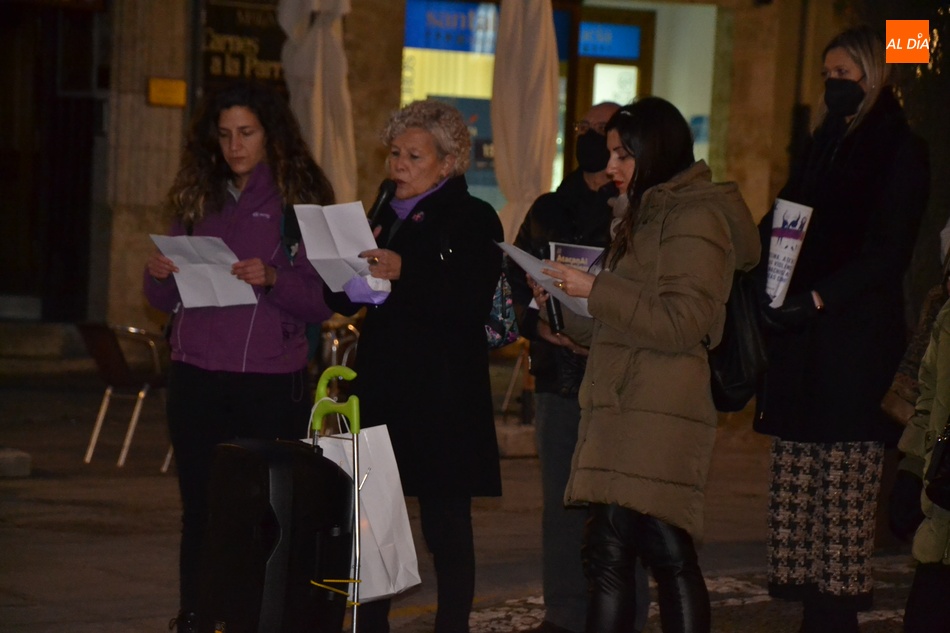 La manifestación fue abierta por una pancarta de Ampli, portando carteles alusivos bastantes de los asistentes (entre los que estuvieron Davinia Montero, Beatriz Jorge Carpio, Ramón Sastre, Jorge Labajo y Carmen Lorenzo), al mismo tiempo que iban sonando canciones reivindicativas. Una vez en la Plaza Mayor, se dio lectura a un manifiesto, en rechazo de "toda aquella violencia ejercida contras las mujeres por el hecho de serlo". Así, no sólo se mencionó la violencia de género, sino también la violencia sexual, los crímenes de honor o la prostitución.