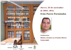 El Casino Obrero de la ciudad textil cumple 140 años desde su fundación y por ese motivo, con la colaboración del Centro de Estudios Bejaranos, el ateneo esta celebrando el ciclo "Casino Obrero de Béjar: 140 años ofreciendo cultura", cuyo eje central es el propio casino, su pasado, presente y futuro.