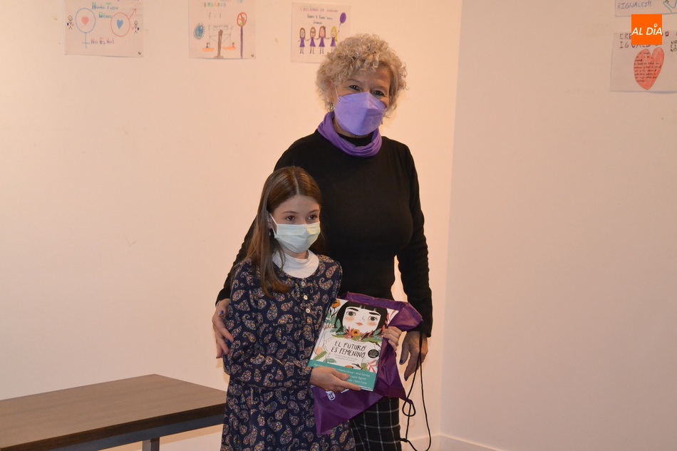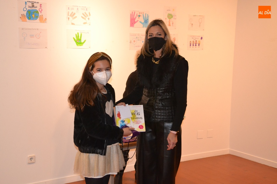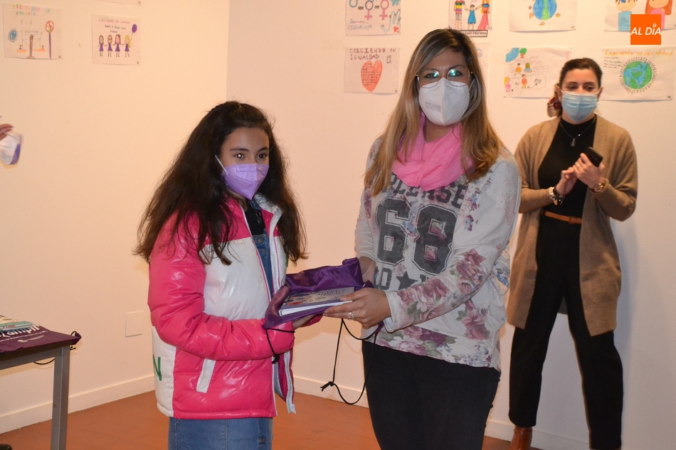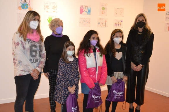 El mismo espacio en la Casa Municipal de la Cultura de Ciudad Rodrigo donde se podrán visitar hasta el próximo martes 30 los dibujos presentados acogió en la tarde del viernes la entrega de premios del XIII Concurso de Dibujo Creciendo en igualdad promovido por la Asociación de Mujeres Progresistas Lorenza Iglesias (Ampli) para conmemorar el Día Internacional para la Eliminación de la Violencia hacia las Mujeres. Como ya se anunció el pasado lunes, la ganadora del certamen ha sido Beatriz Álvarez, del Colegio Miróbriga; seguida de Mar García, también del Colegio Miróbriga; y de Lola Sastre, del Colegio Misioneras de la Providencia-Santa Teresa (todas ellas son alumnas de 5º de Educación Primaria, curso al que estaba destinado el certamen). Las tres niñas se acercaron a la Casa de la Cultura acompañadas de sus familiares para recoger distintos obsequios de manos de las concejalas Davinia Montero y Carmen Lorenzo, y de la presidenta de Ampli, Soledad Heras.