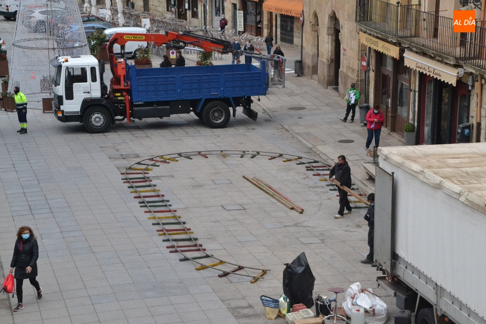 Desde el Ayuntamiento se anima a todo el mundo a acudir a este 'inauguración' de la Navidad mirobrigense, cuyos preparativos continuaron ultimándose en la mañana del miércoles en la Plaza Mayor, donde tras haberse montado el gran pino de 10 metros de altura, ahora es turno para desplegar las guirnaldas que unirán su copa con los balcones del espacio para crear un 'techo lumínico'. Asimismo, en la mañana del miércoles comenzaron a llegar las atracciones infantiles que va a albergar el ágora, siendo la primera el trenecito que ya estuvo hace dos años.
