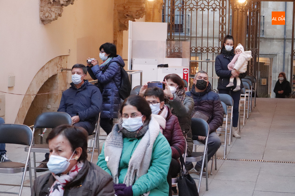 El Patio del Palacio de La Salina se ha llenado de ambiente navideño de la mano del concierto de Villancicos a cargo del Coro 'Nuevos Aires del Tormes' y Coro de Cámara del Casino de Salamanca.