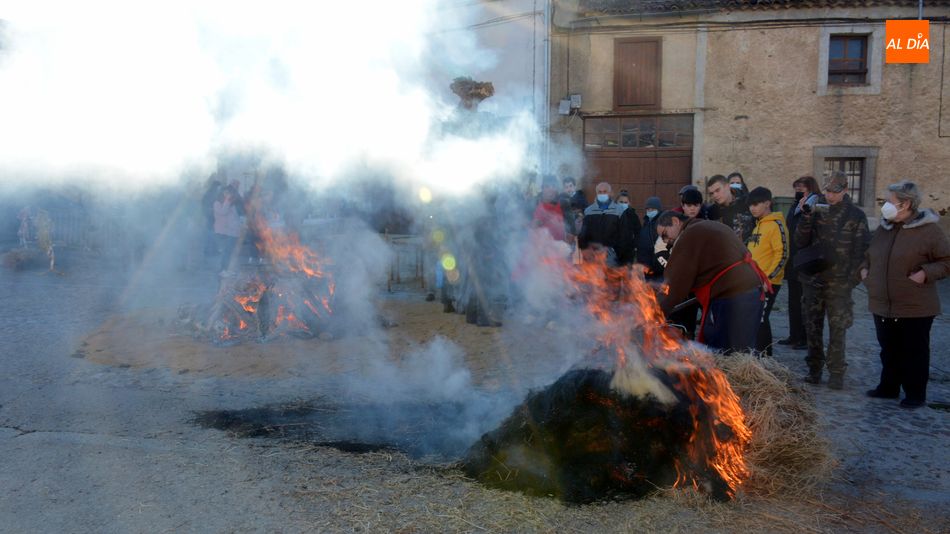 En otra hoguera, en este caso de paja, se procedía al chamuscado del cerdo, una hermosa hembra de 22 arrobas de peso que fue trasladada a la plaza ya sacrificada. En esta primera faena matancera se involucró con energía Tomás Ángel Centeno Isidro, Matancero de honor de este año. Tomás estuvo ayudado en todas las faenas de la jornada por un grupo de vecinos de Hinojosa, con el alcalde, José Francisco Bautista a la cabeza.