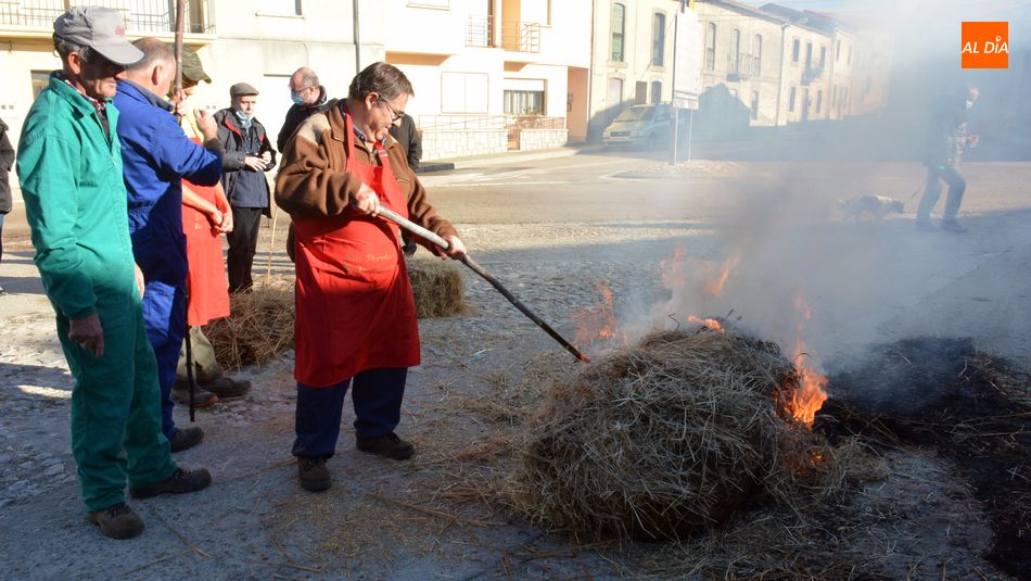 Varias de las piezas fueron asadas a la lumbre para a continuación ser degustadas por los asistentes, que recogieron las "chichas" y un trozo de pan con su mano enguantada ? la organización repartió guantes- como medida de prevención sanitaria. La desgustación de chichas fue el aperitivo de la comida típica que se repartió al mediodia: sopa castellana y café de puchero.