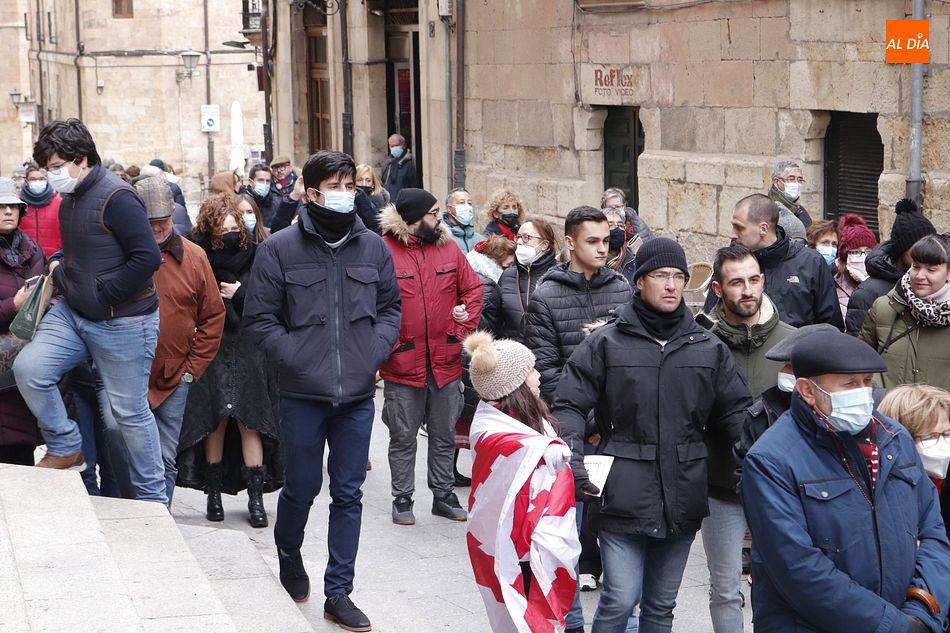 Una vez llegó la comitiva a la plaza, se pronunciaron unos discursos junto a la estatua de Francisco de Vitoria por parte de D. Luís Carlón, presidente de la A. C. Fernando III, D. Jose María Guevara, portavoz de la A. C. Beatriz Galindo y D. Daniel Marín profesor universitario y experto en la escuela de Salamanca.