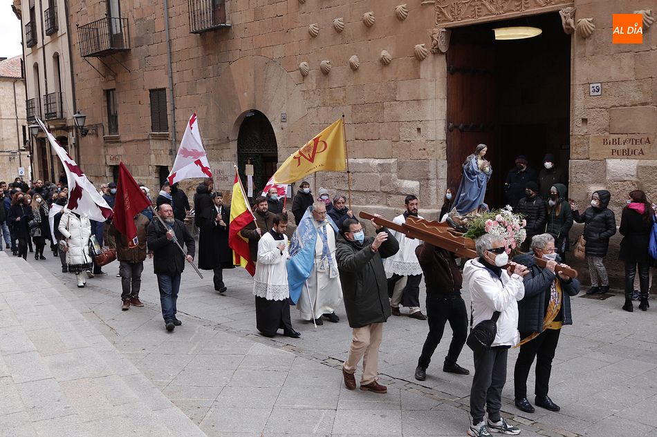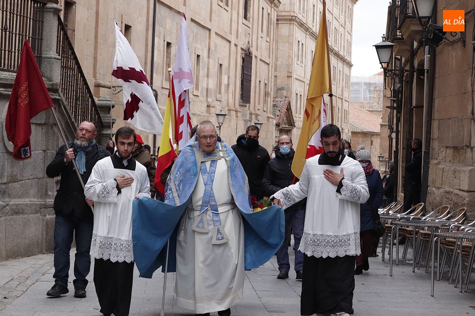 Salamanca ha acogido hoy diversos actos de homenaje a la Inmaculada Concepción y a los héroes del Milagro de Empel, patrona de España, en esta jornada festiva en la ciudad. La asociación cultural Beatriz Galindo "La Latina" de Salamanca, la asociación cultural Fernando III "el Santo" de Palencia, y la Plataforma por la Hispanidad de Avila han sido las encargadas de organizar los actos.