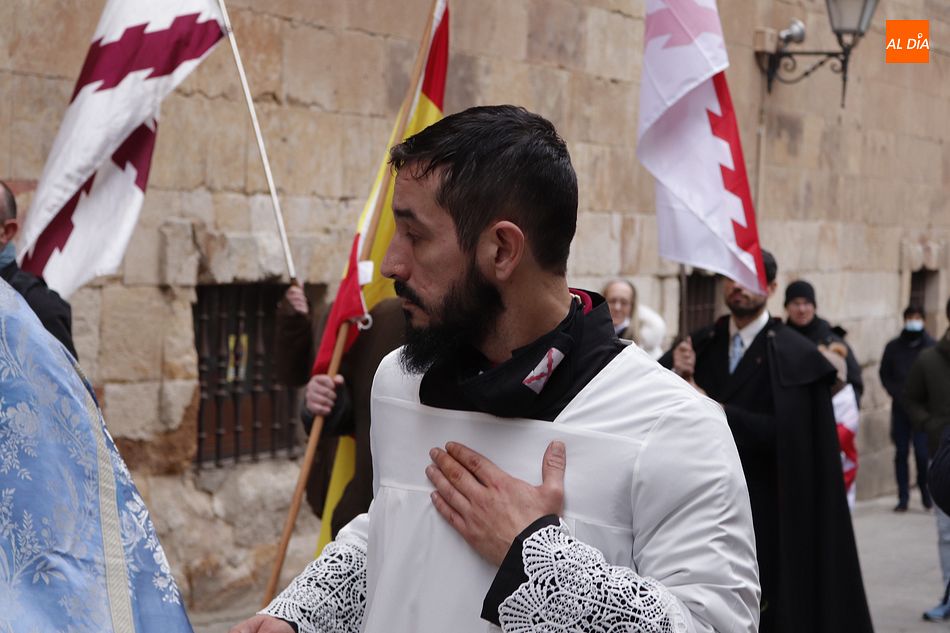 A la conclusión de los discursos se regresó a la iglesia de San Benito por la calle Tostado, plaza de Anaya, calle de Francisco Vitoria, calle de la Compañía hasta la iglesia de San Benito.