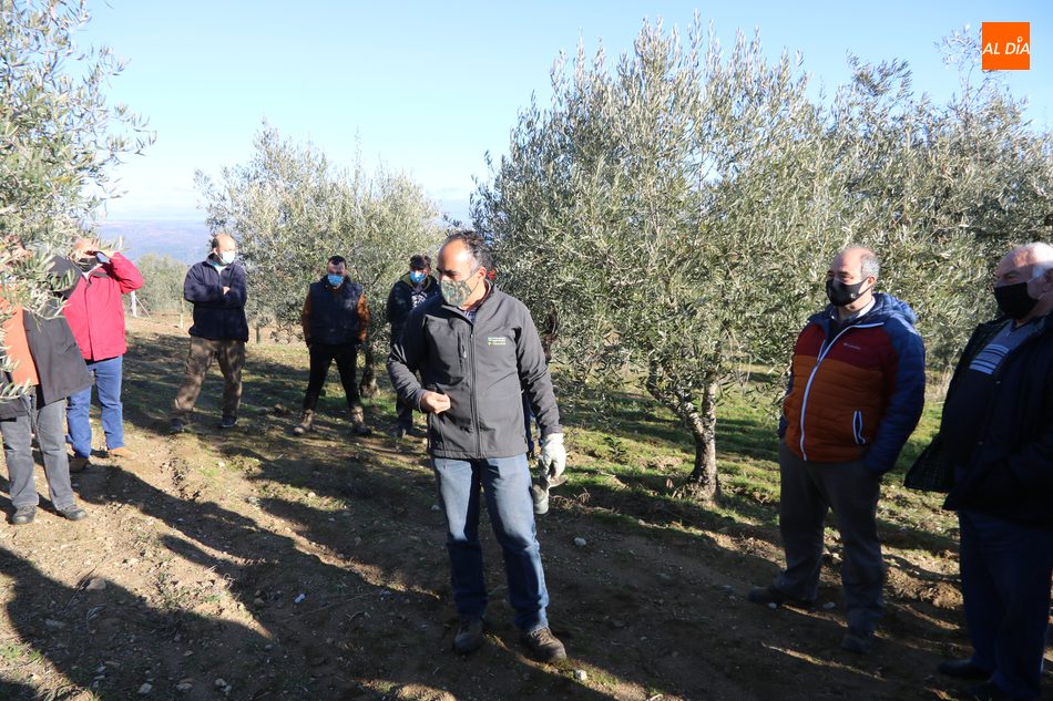 Una vez finalizada la parte teórica, con respuestas a las preguntas planteadas por los asistentes, productores de aceituna de Las Arribes, principalmente procedentes de Villarino de los Aires, Pereña de la Ribera y Mieza, se pasó a una demostración de poda en un olivar de la localidad, donde los asistentes pudieron observar las explicaciones realizadas en la parte teórica por Rafael Navarro.