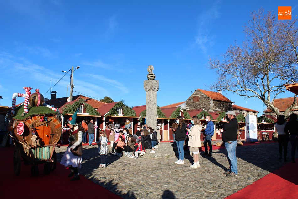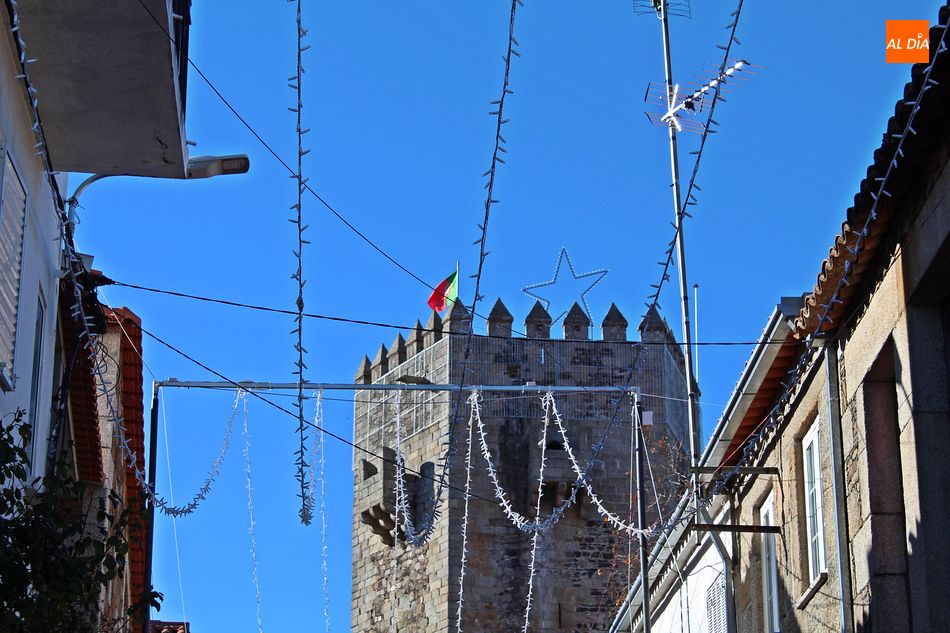 Desde la decoración navideña del Largo da Fonte, en el centro contemporáneo de la ciudad, seguimos la senda marcada por la alfombra roja y subimos por la Rua 5 de octubre, descubriendo las Estrelas de Natal, realizadas por colegios, residencias y otros centros sociales del concejo con materiales encontrados en la naturaleza. Llegamos hasta los Pazos del Concejo traspasando un mural con entradas a dos alturas: una para los adultos y otra para los niños. Pasamos una segunda entrada, la de la Torre del Reloj, adosada a los restos de la antigua muralla, y seguimos subiendo, ya con la imagen del castillo como horizonte.