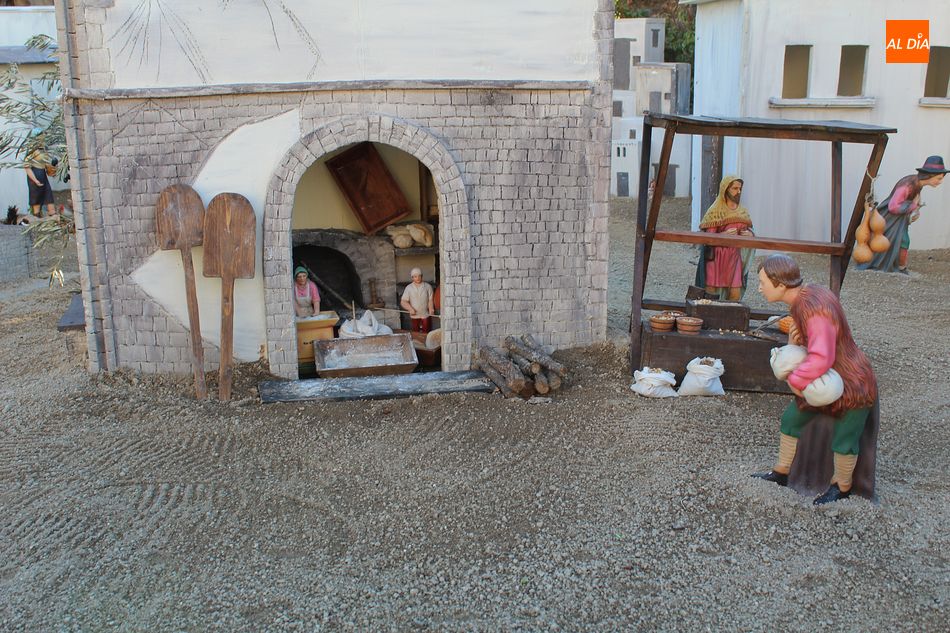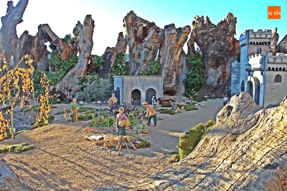 A partir de aquí, la organización propone al visitante otro viaje, recorrer las tierras de los montes de Judea, donde están representados los oficios de la época, vigilados por los soldados romanos, y los tradicionales de esta región, y acompañar a los Reyes Magos hasta la cueva donde se recrea el nacimiento del Niño Jesús. Con los muros del imponente castillo como fondo, bajo el tronco de un viejo castaño, aparece la Sagrada Familia, en la parte central del belén.