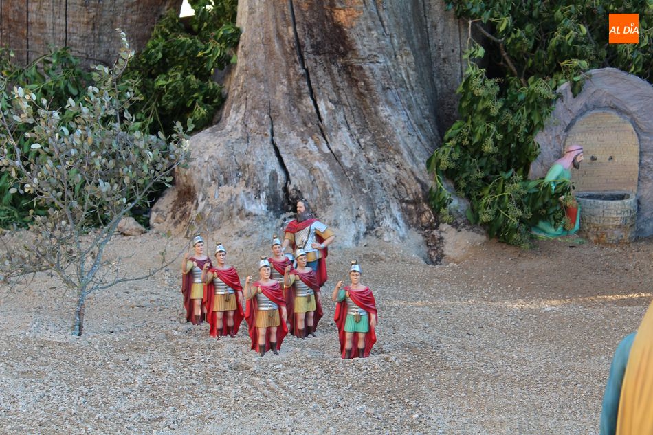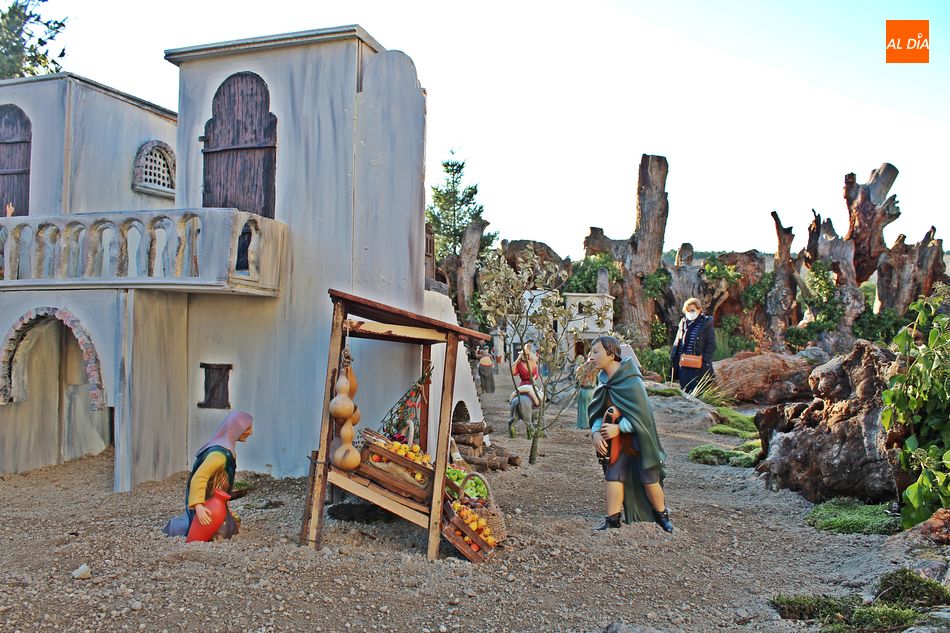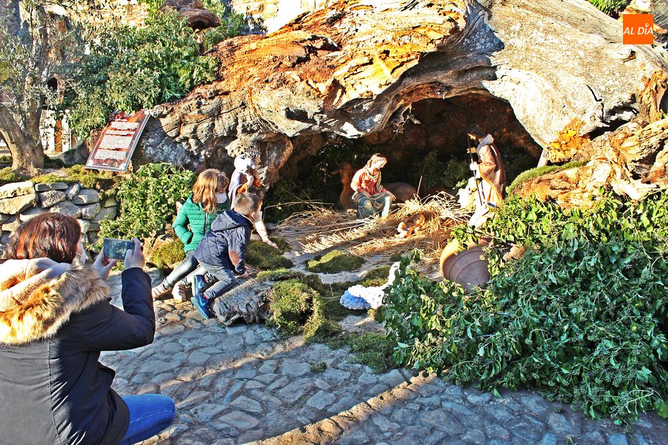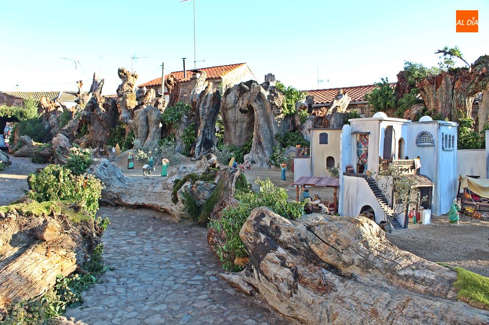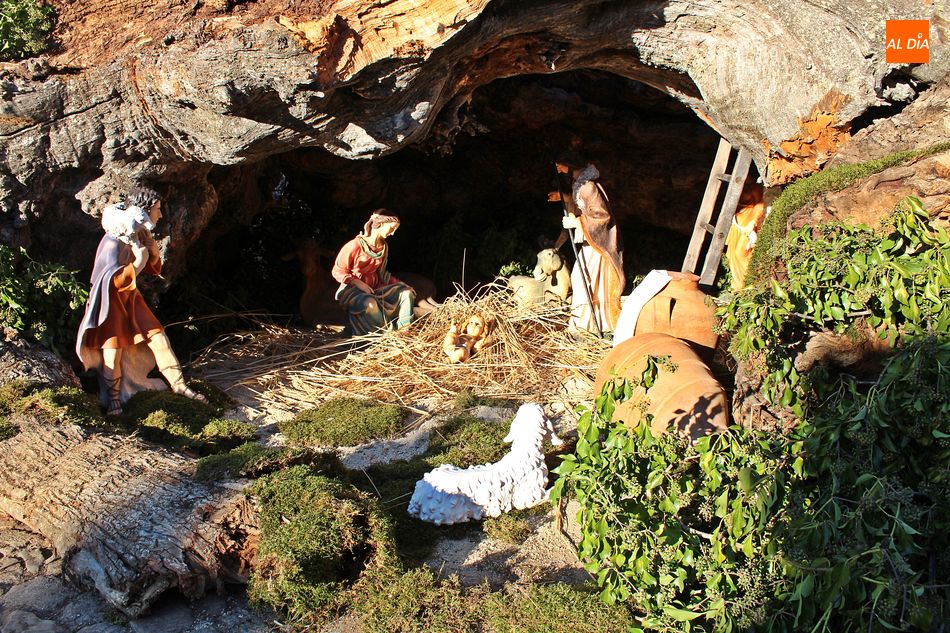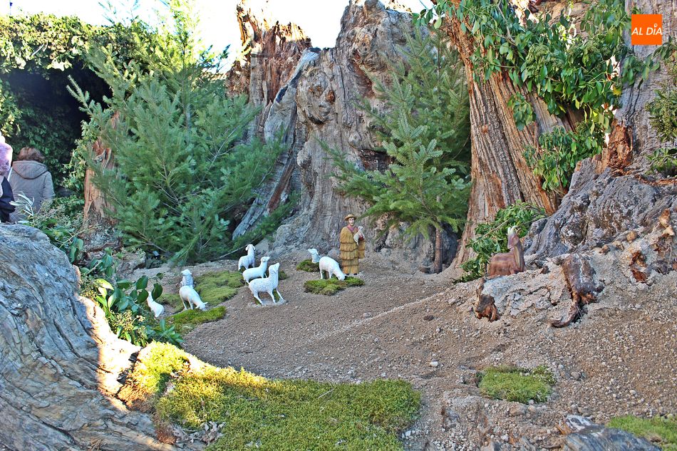 La escala del belén de Sabugal y su distribución favorecen que el visitante se sienta parte de él. Es posible sentarse en uno de los gruesos troncos a contemplar la Sagrada Familia en el portal, atravesar el puente sobre el río o descubrir a los Reyes Magos en su peregrinaje hacia Belén, desde unas tierras que parecen muy lejanas, pues en el paisaje hay palmeras, arena y cactus.