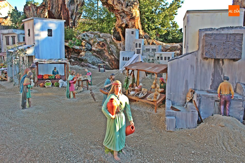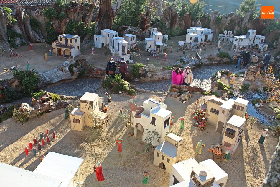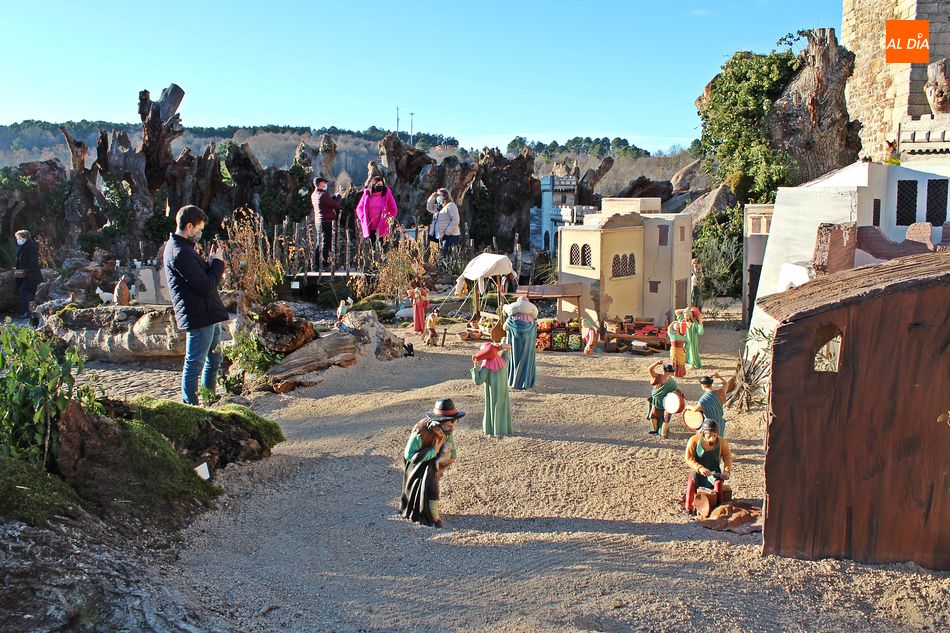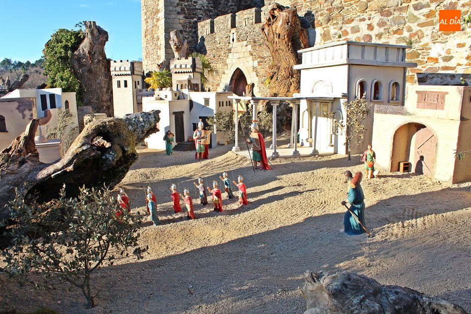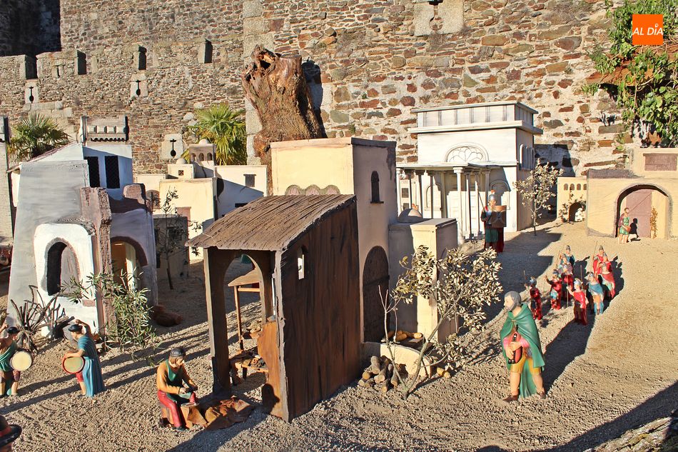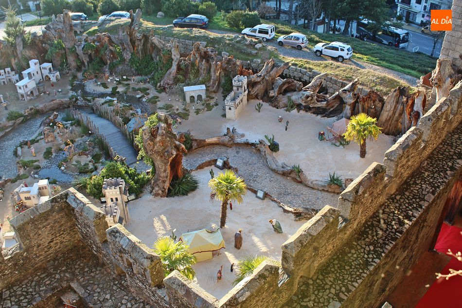 A partir de aquí, la organización propone al visitante otro viaje, recorrer las tierras de los montes de Judea, donde están representados los oficios de la época, vigilados por los soldados romanos, y los tradicionales de esta región, y acompañar a los Reyes Magos hasta la cueva donde se recrea el nacimiento del Niño Jesús. Con los muros del imponente castillo como fondo, bajo el tronco de un viejo castaño, aparece la Sagrada Familia, en la parte central del belén.