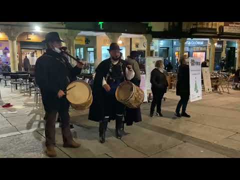 La Federación de Asociaciones de Vecinos de Salamanca (Fevesa) ha llenado el centro de la ciudad de los sones de los tamborileros. Una animación de calle en sustitución del belén reivindicativo que han optado por no realizar debido a la evolución de la pandemia de la Covid-19.