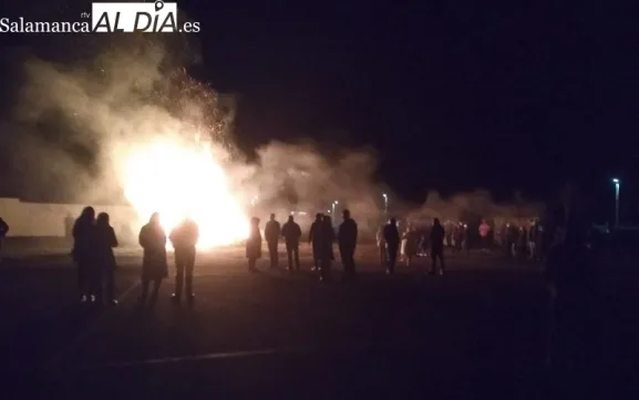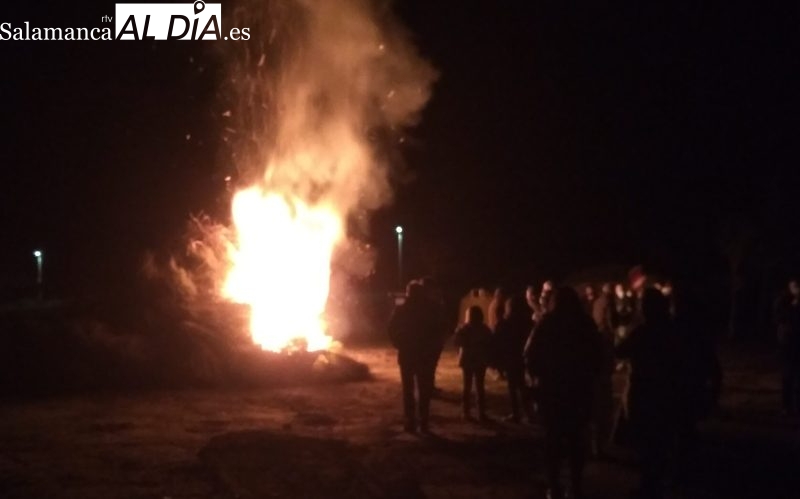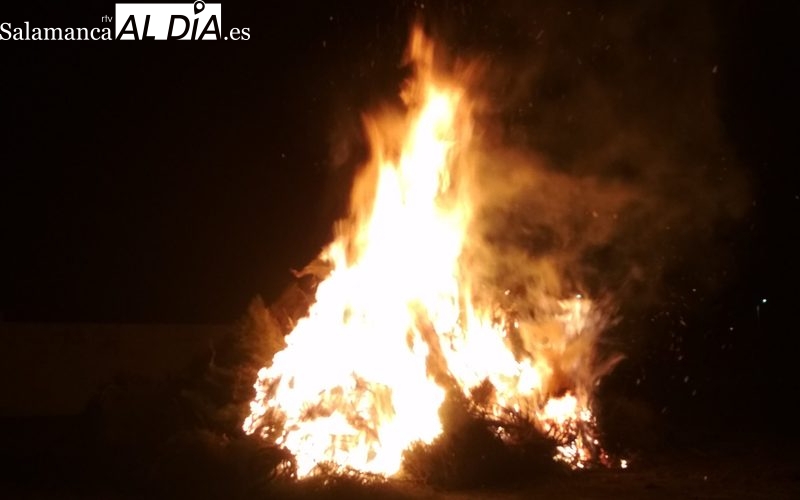 Suelen ser los jóvenes del pueblo los que van a recoger y darle forma a la hoguera que se prende después de comer las uvas. Pasadas las 00:05 horas, las llamas de la fogata duran una hora y media y alcanzan varios metros de altura.