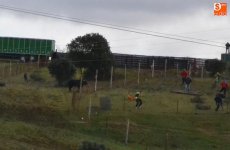 Por fortuna, dos de los toros decidieron continuar por la zona de campo situada a la izquierda del mallazo (podían haberse dirigido incluso a la zona de público situada fuera de agujas), mientras que el tercer toro se volvió a meter al recorrido, deshaciendo junto a otro toro el camino andado (es decir, subieron hacia la zona de los corrales).