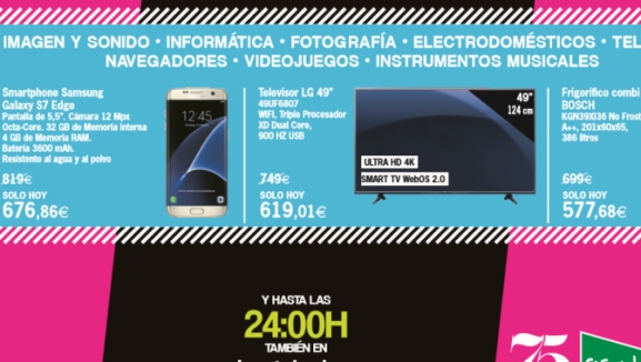 La promoción, que sólo tendrá validez durante mañana, sábado 11 de junio, incluye a la mayoría de los artículos de las áreas de Televisión y Sonido, Informática, Fotografía, Electrodomésticos, Aire Acondicionado, Audio Portátil y Telefonía. También se verán beneficiados por el mismo descuento otros artículos como Pequeños Electrodomésticos, Consolas y Videojuegos.