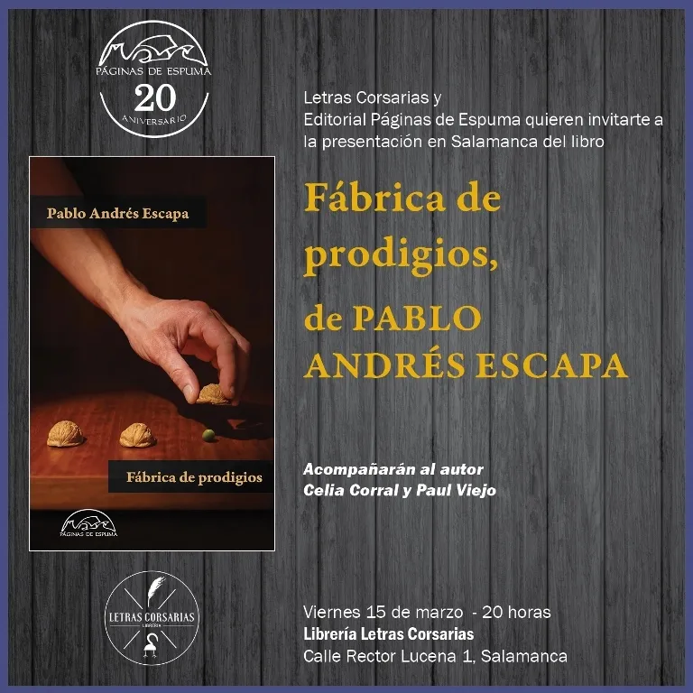 Y es que León ya debería escribirse con letras de oro cuando hablamos de literatura, las generaciones se suceden pero la calidad se mantiene atención a Pablo Andrés Escapa, oirán hablar mucho de él, este viernes en Salamanca, ya que protagonizará un acto literario, a las 20.00 horas, en la librería Letras Corsarias (calle Rector Lucena 1).