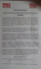 En sus cinco puntos, la declaración apuesta por la elección directa de los cargos públicos en el PSOE por la militancia, según el compromiso adquirido por el actual secretario general de los socialistas castellanos y leoneses Luis Tudanca, Además se aboga por la limitación de los mandatos para todos los cargos, a tal efecto insta a que se cree en el menor tiempo posible una normativa para que eso se haga efectivo.