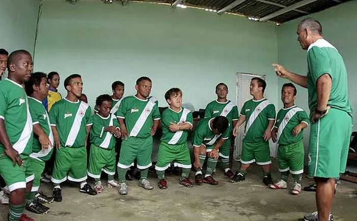 que llega a ser el mejor de aquel país en la categoría de ?enanos?. Allí, semana a semana, una veintena de jugadores desafía a otros equipos para hacerse visibles, siendo la figura del equipo Casemiro Roberto, de 27 años, más bien conocido por Wagner Love por su parecido físico con el delantero profesional brasileño, también por sus goles. El fondo de toda esta cuestión es que dichos jugadores sufren de ?enanismo? aunque jueguen en el ?Gigantes?. Las pautas mínimas para seleccionar los futbolistas de este equipo fijan que los jugadores deben medir menos de 1,40 metros.