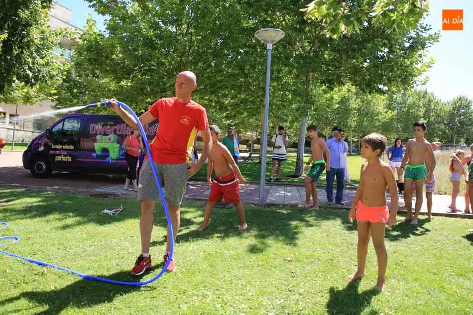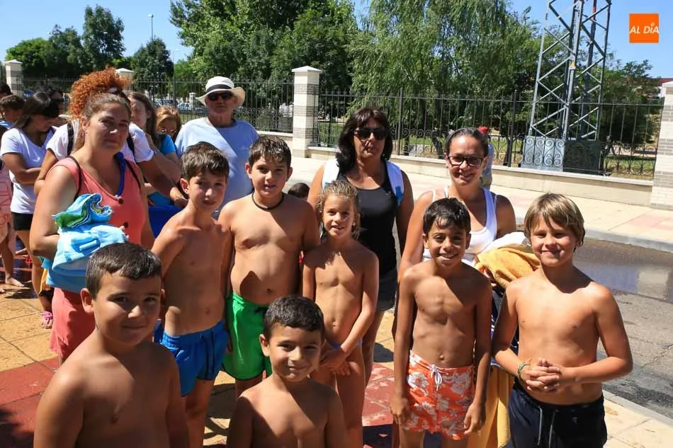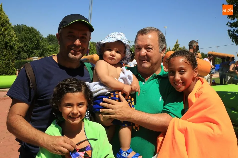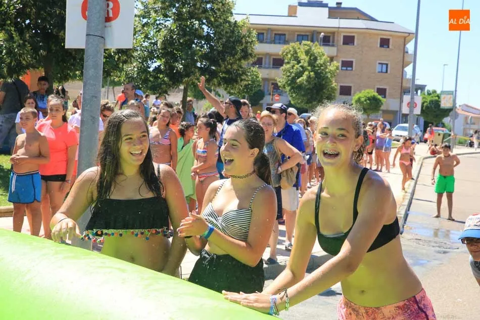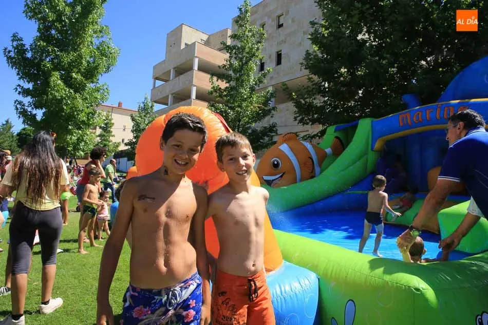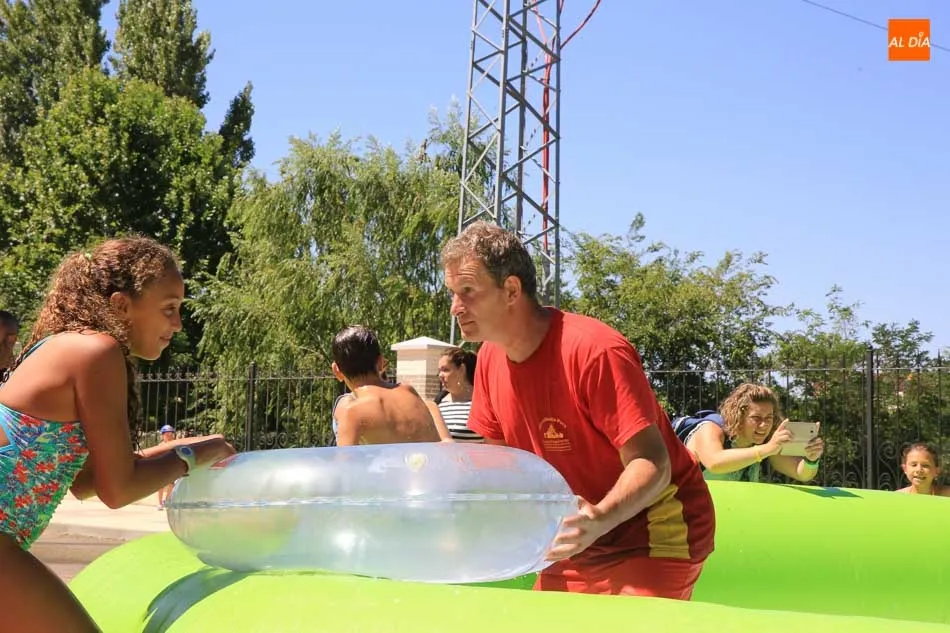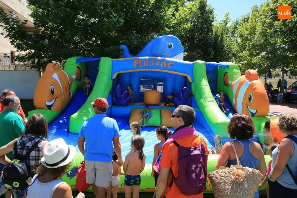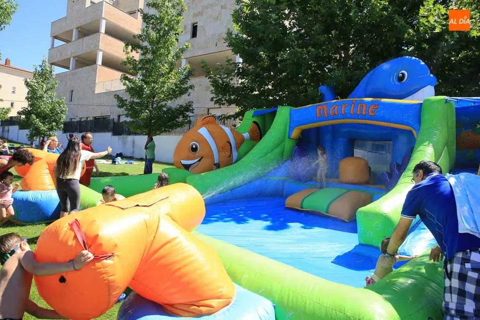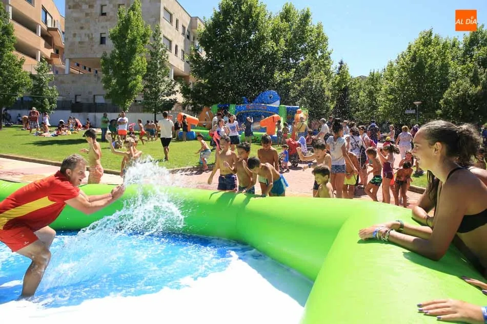 Las fiestas de San Roque, en Carbajosa de la Sagrada, siguen garantizando escenas divertidas, sobre todo para los más pequeños. Así, esta mañana, tenía lugar la Fiesta del Agua en el Prado de La Vega. Un atractivo programa acuático que incluía hinchables, tobogán y una gran rampa de 50 metros de largo, por la que desfilaron todos los participantes.