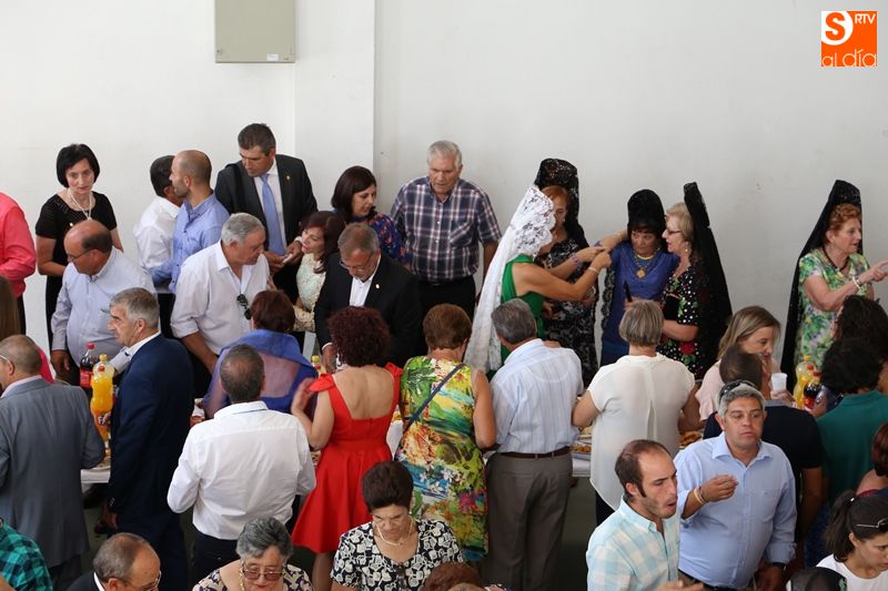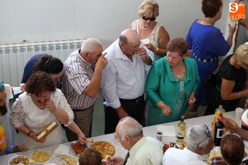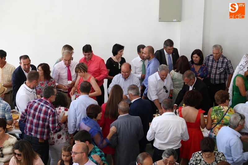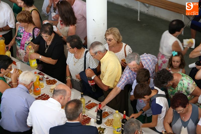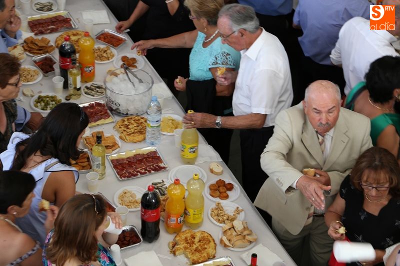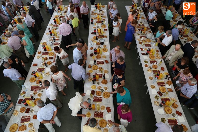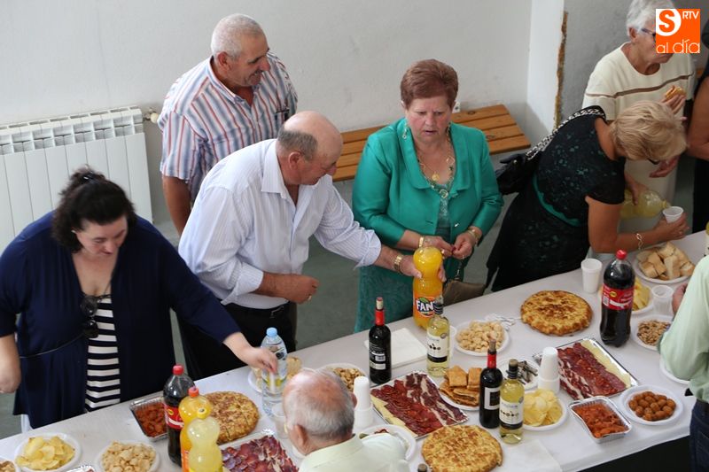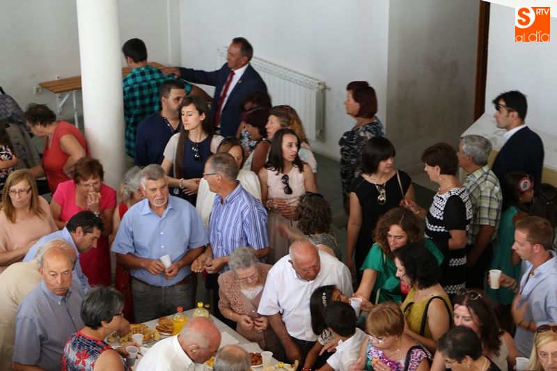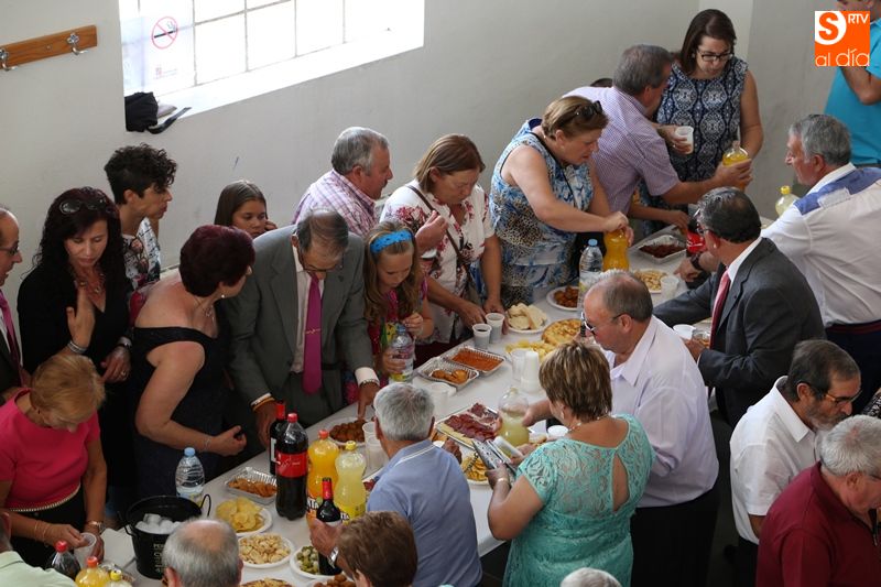 Una vez que la Virgen de la Vega volvió al interior de la iglesia, los vecinos se dirigieron hacia el Centro Cívico, contiguo al Consistorio, para disfrutar del vino de honor. Embutido, tortilla o empanadas fueron algunas de las viandas que degustaron los asistentes, que dieron también buena cuenta del vino y los refrescos.