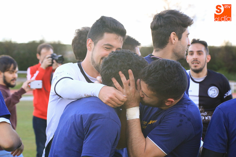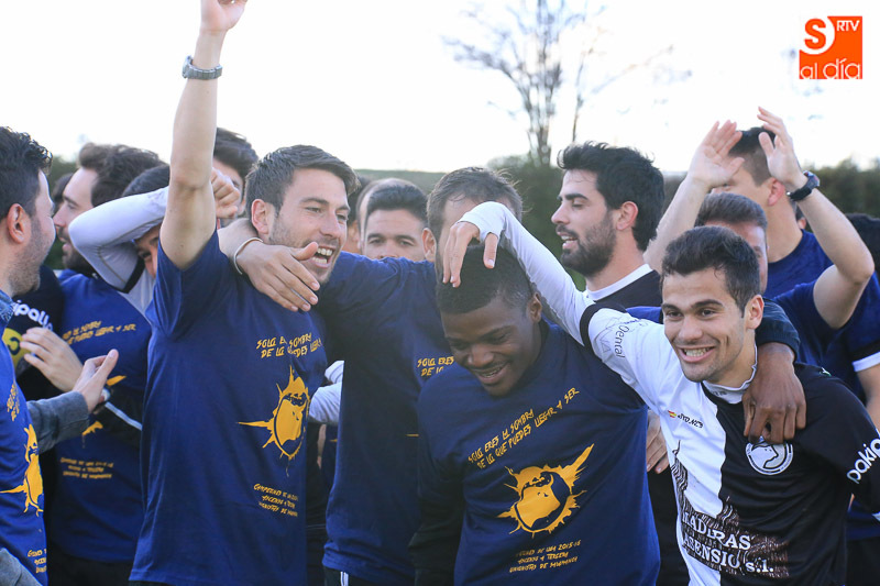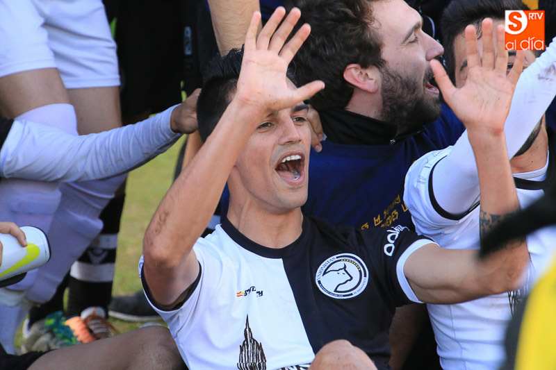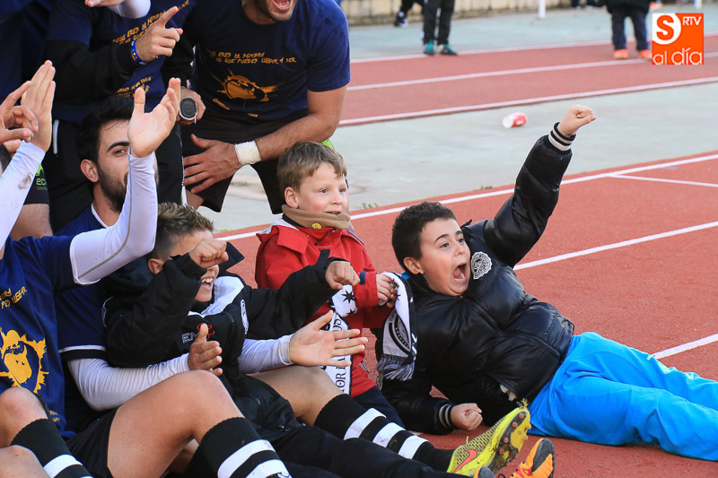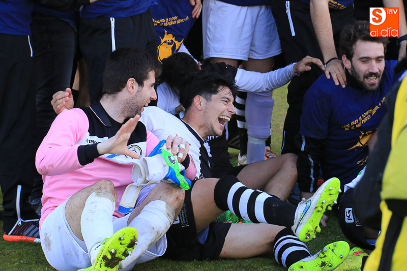 El pitido final fue una explosión de entusiasmo y felicidad de los cientos de aficionados y socios de Unionistas que este sábado hizo historia con el ascenso a Tercera División.