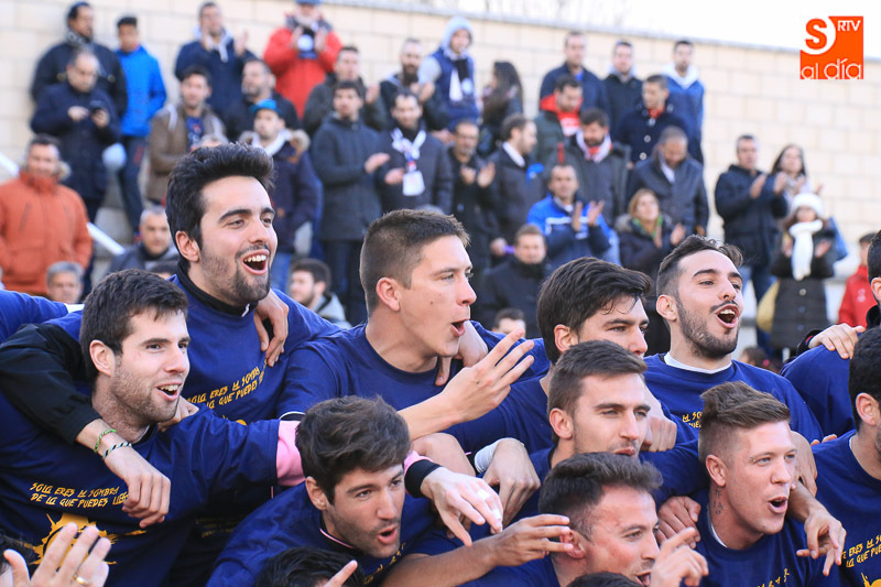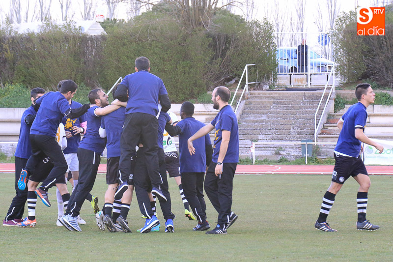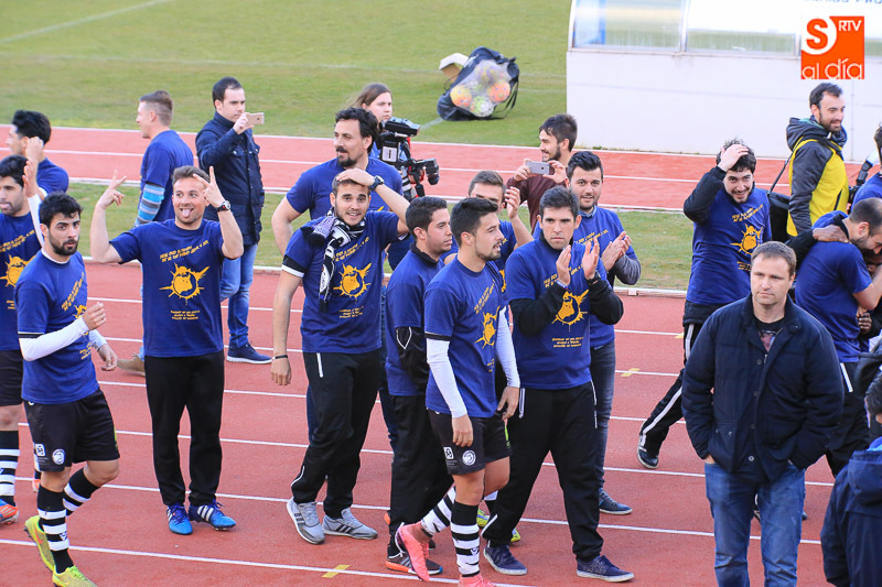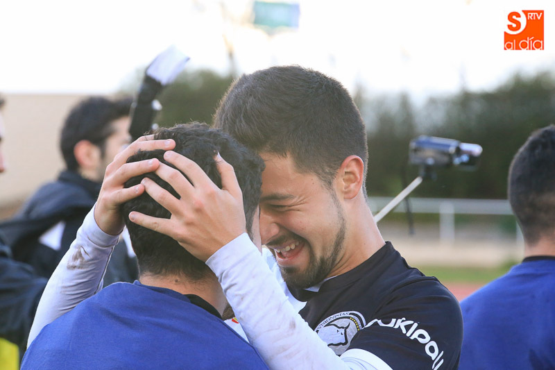 Los jugadores saltaron a Las Pistas sabiendo lo que había hecho el Zamora B ante el Villa de Simancas. El 0-3 final pone en bandeja de plata el ascenso. Unionistas tenía que hacer los deberes y comenzó a hacerlos a los 11 minutos de juego con el gol de Juan Fraile. Las gradas de Las Pistas del Helmántico se vinieron abajo. Pero los jugadores querían más y a los 14 minutos Albertín ponía el 2-0 ante el delirio general de la afición.